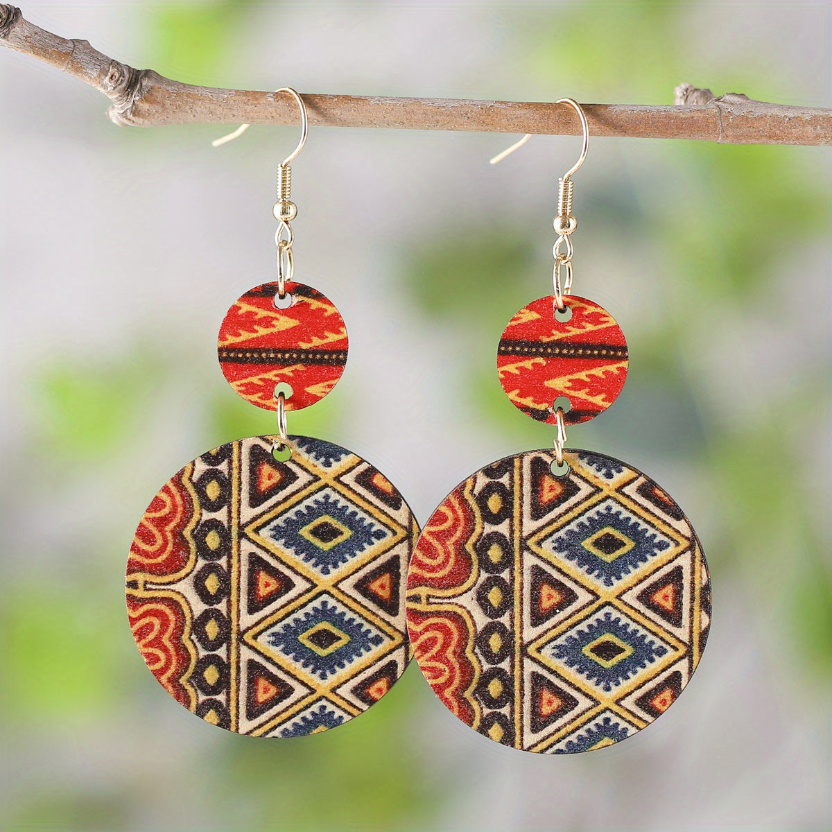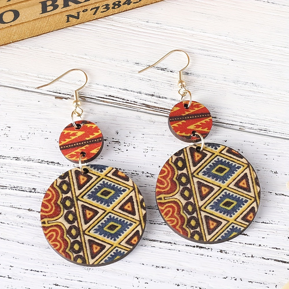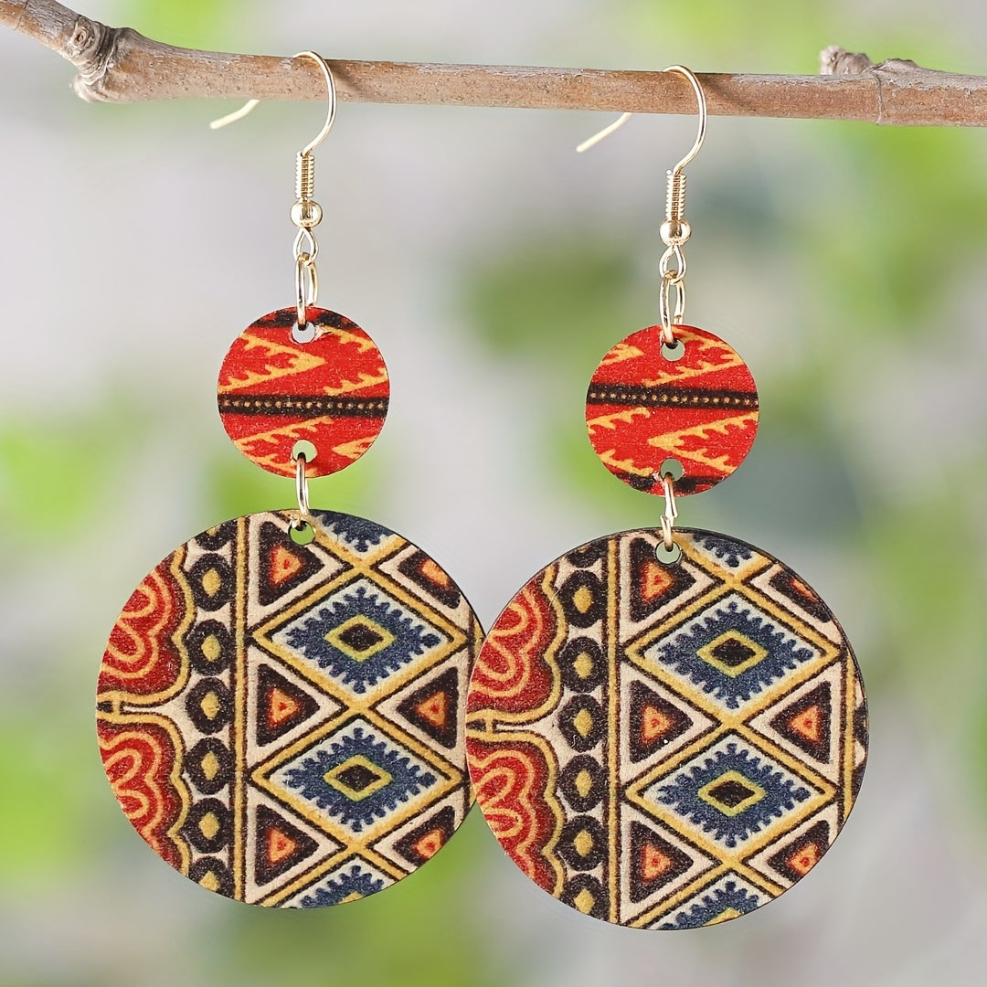 Unique retro-inspired dangle earrings featuring African geometric patterns. The perfect gift for women and girls who love bohemian style.