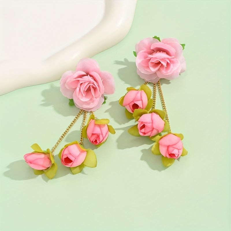 Bohemian Fabric Flower Dangle Earrings Polyester Holiday Accessories
