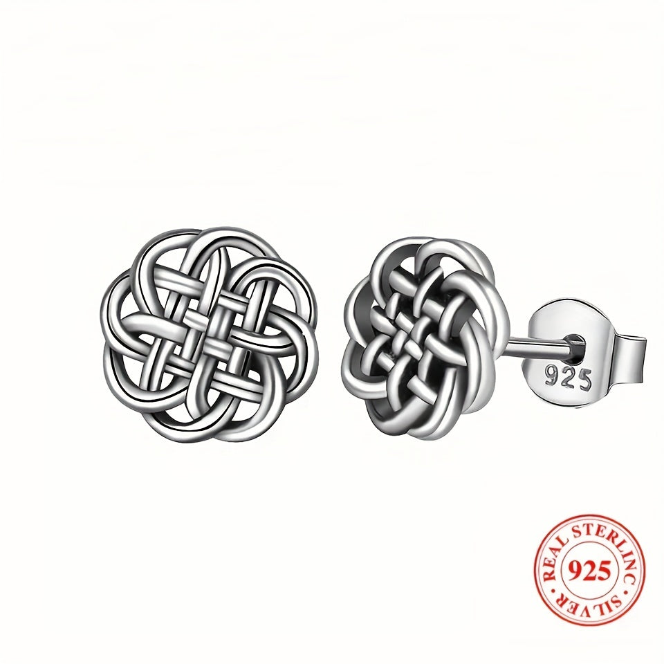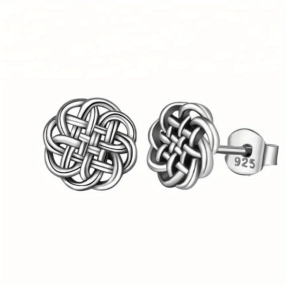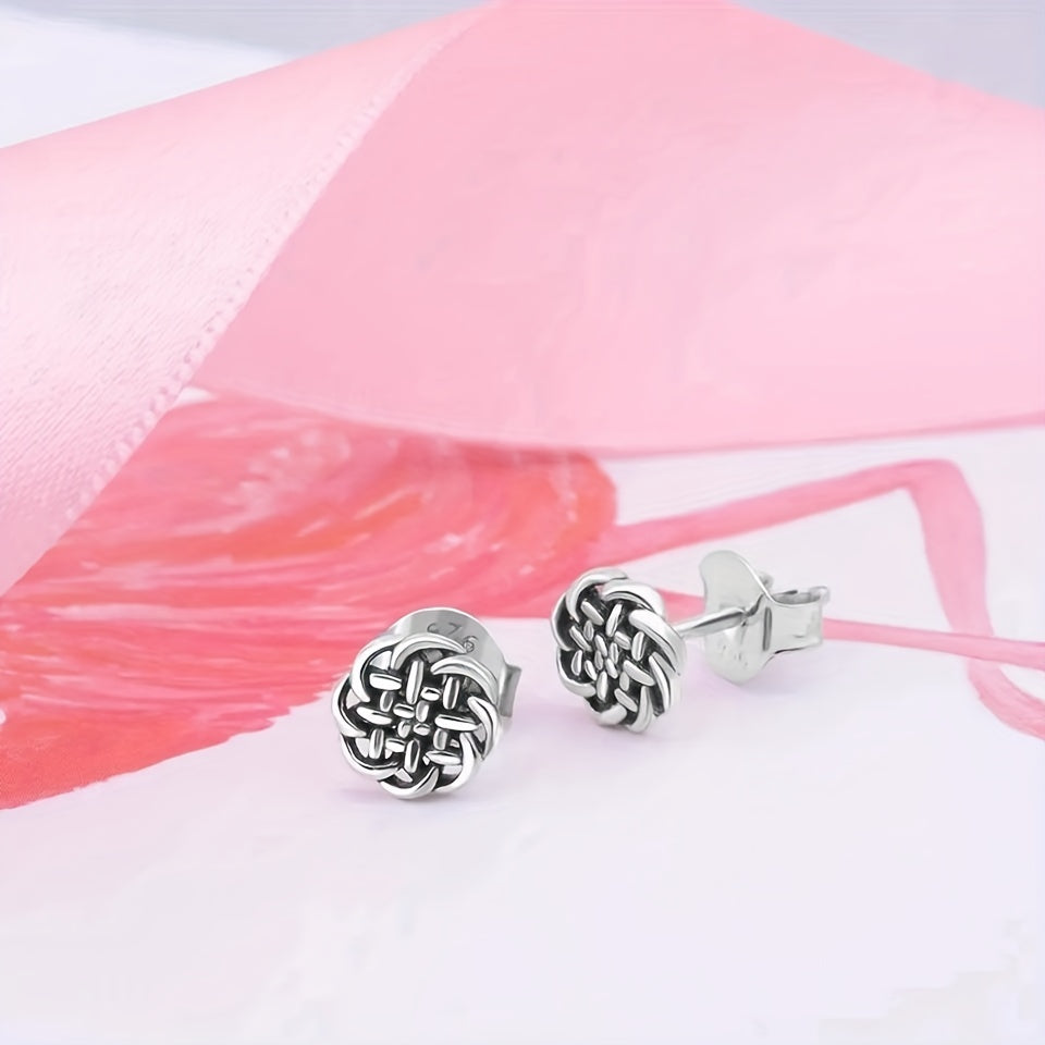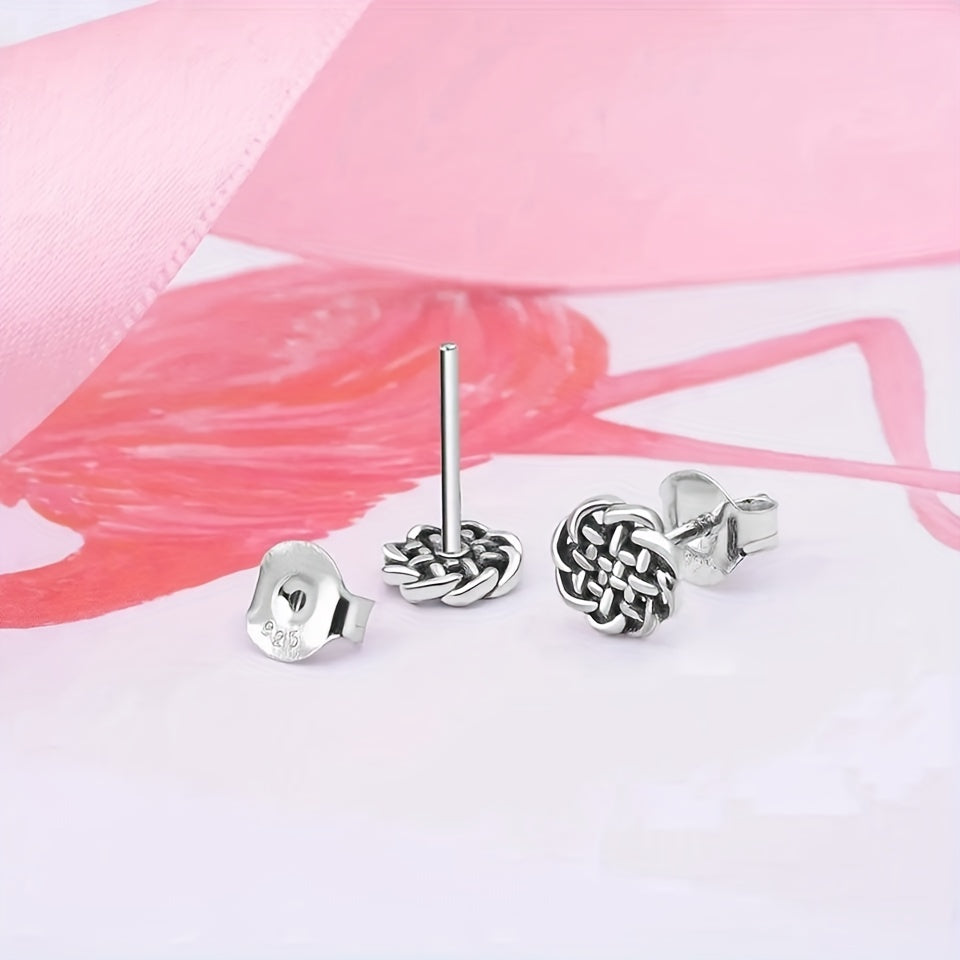 Bohemian Style Silvery Knot Stud Earrings 925 Silver Jewelry Gift
