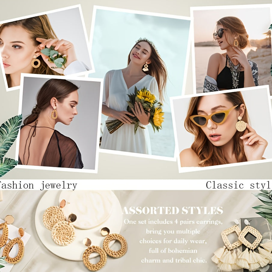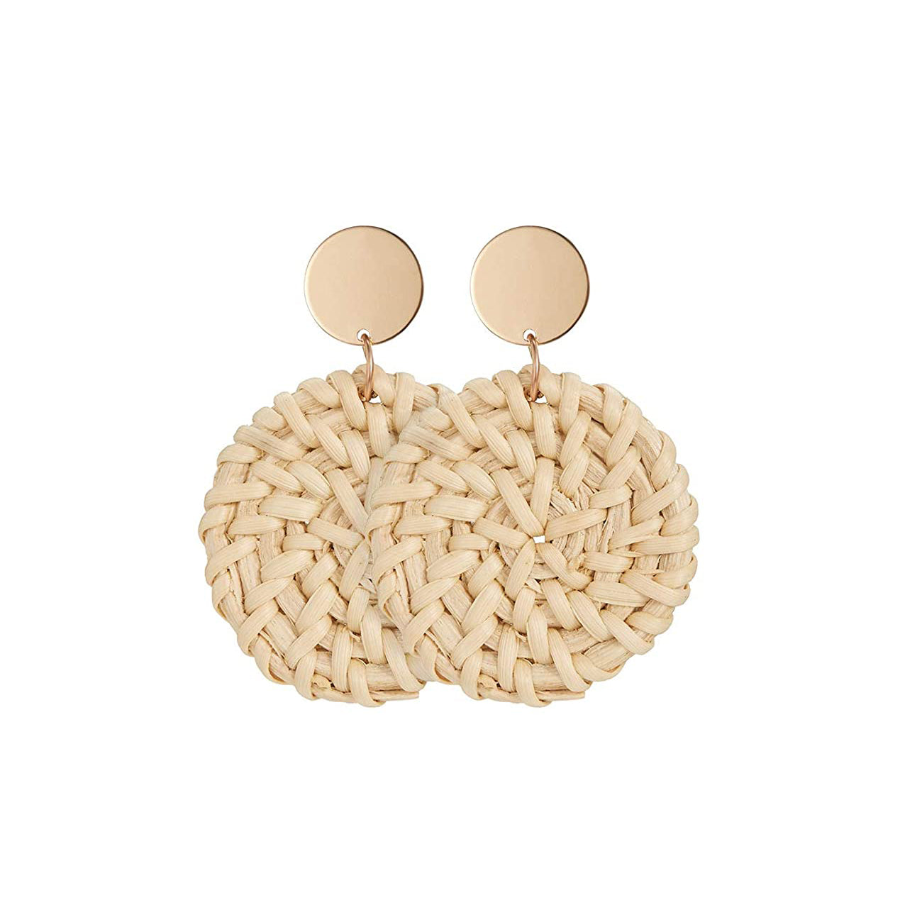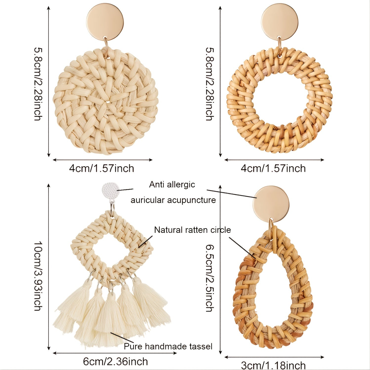 Exude bohemian charm with these rattan geometric pattern earrings featuring tassels. Perfect for adding a touch of woven style to your outfits.