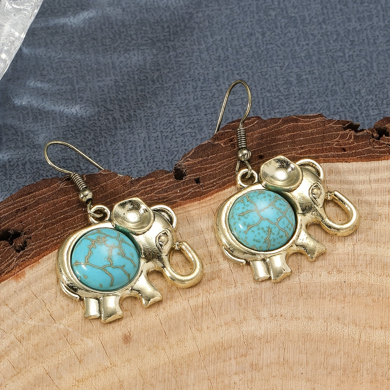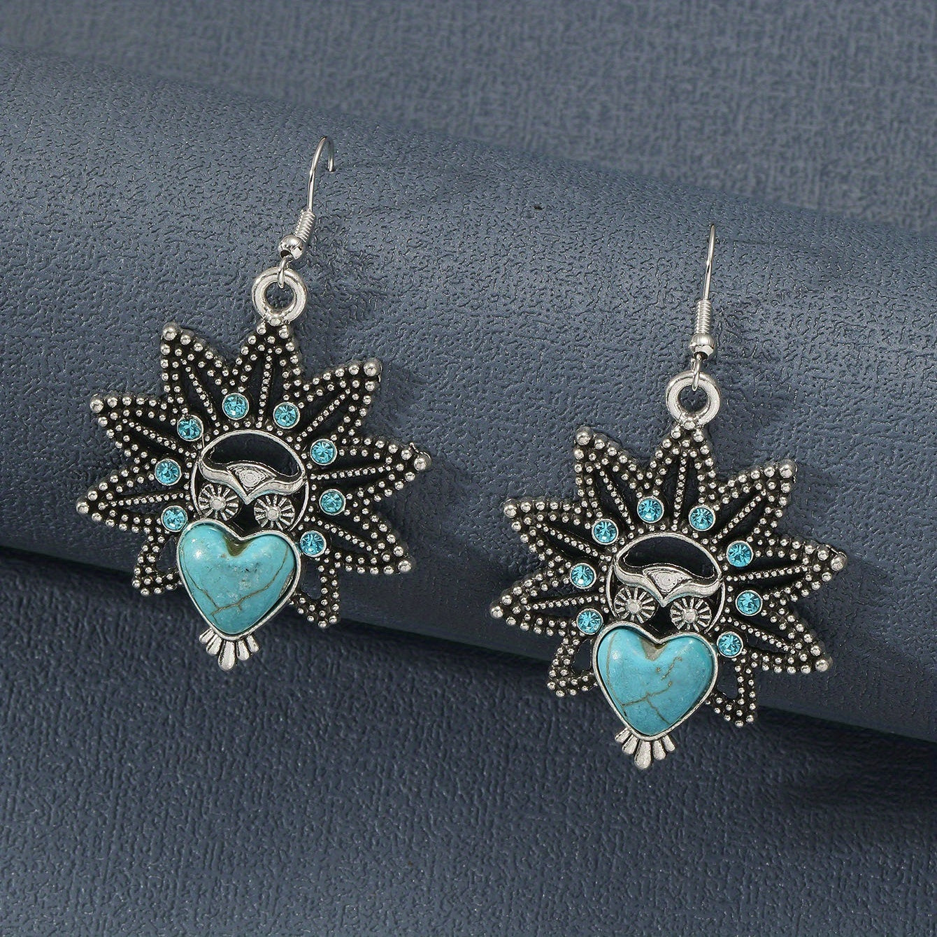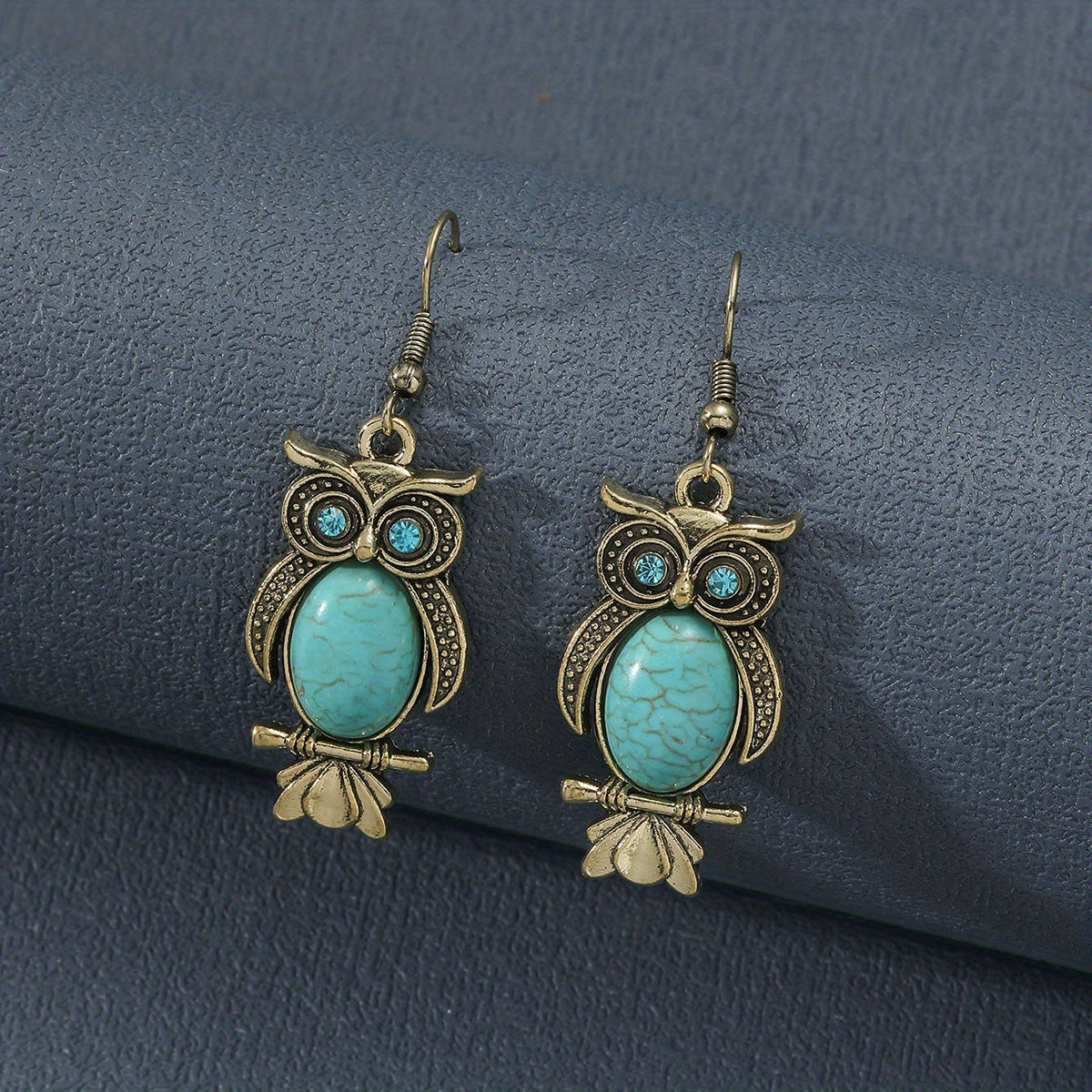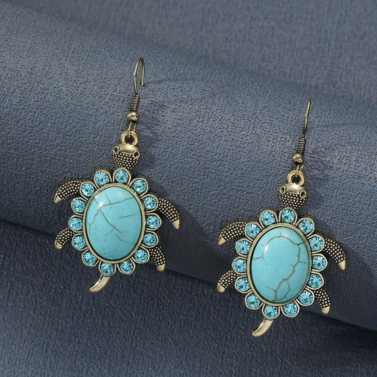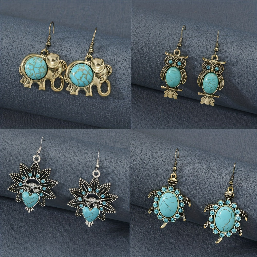 These retro animal earrings feature elephants, owls, turtles, and hearts made of turquoise alloy with rhinestones. Perfect for a unique and stylish look.