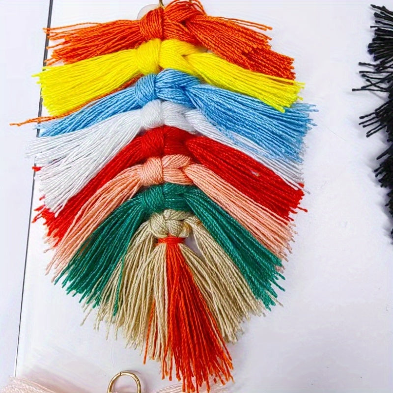 Add a touch of bohemian style to your accessories with this handmade keychain and earrings set. Featuring vibrant rainbow beads, this set is perfect for adding a pop of color to your look.
