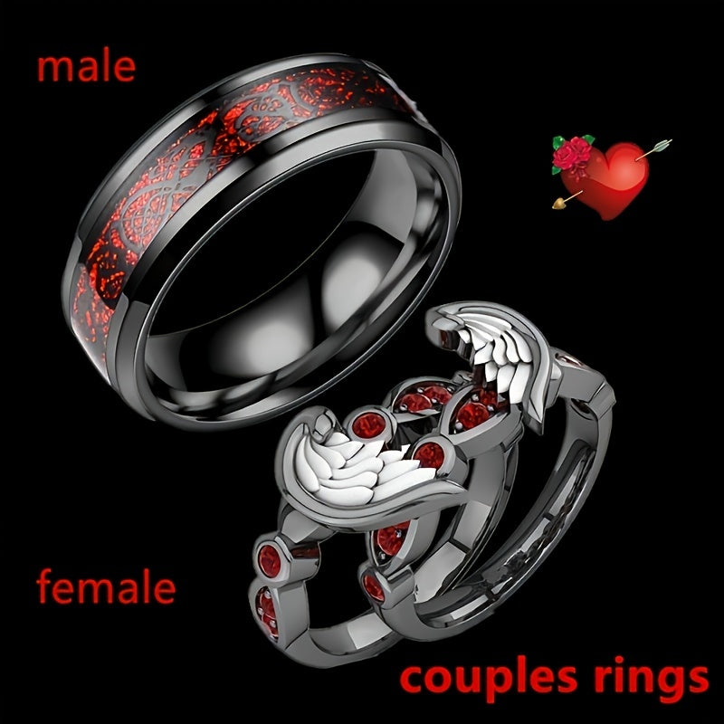This timeless titanium steel ring set features a heart-shaped design, perfect for engagement or marriage gifts.