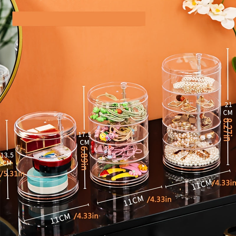 Keep your beauty essentials organized with this stylish and convenient cosmetic case. The rotating head rope design allows easy access to your jewelry, earrings, hairpins, and lipstick while keeping them dust-proof.
