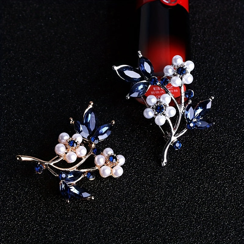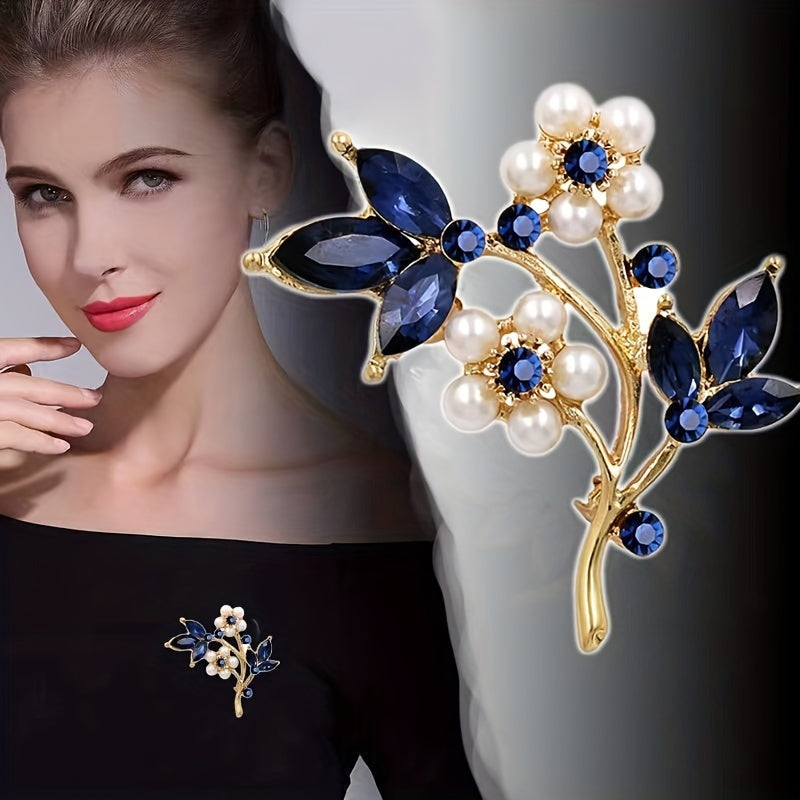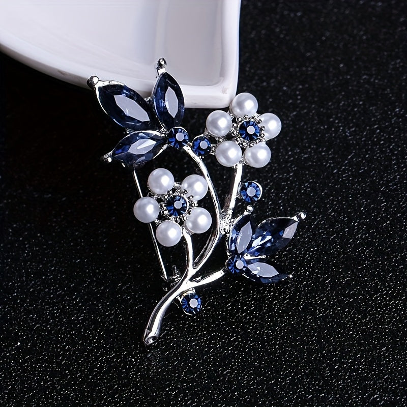 Add a touch of elegance with this stunning brooch featuring crystal flowers and faux pearls. Perfect for clothing embellishment or as a corsage.