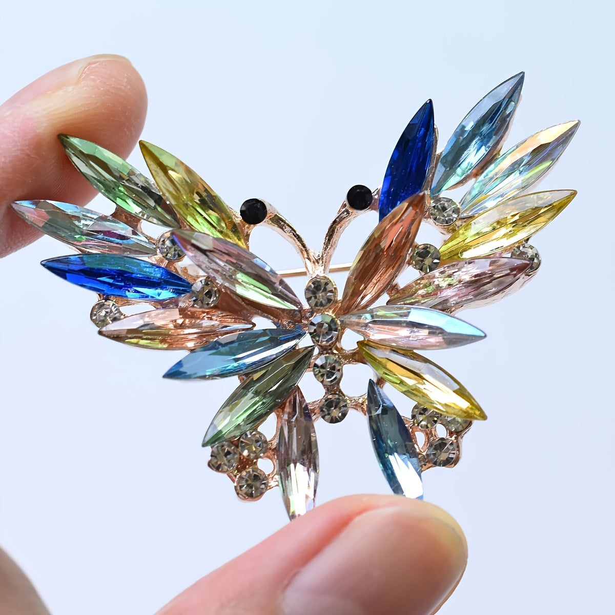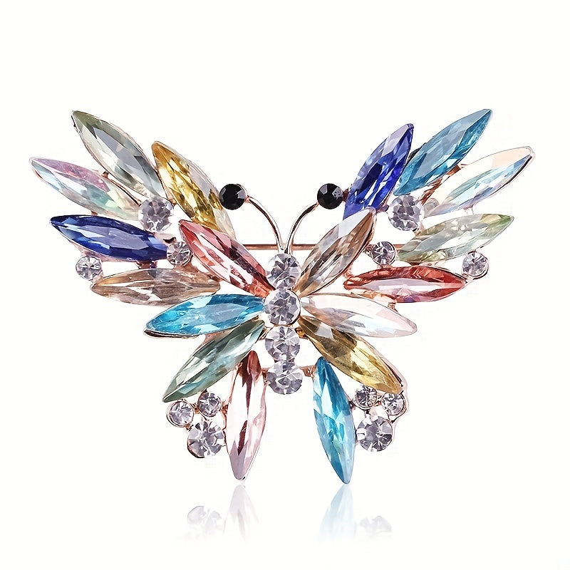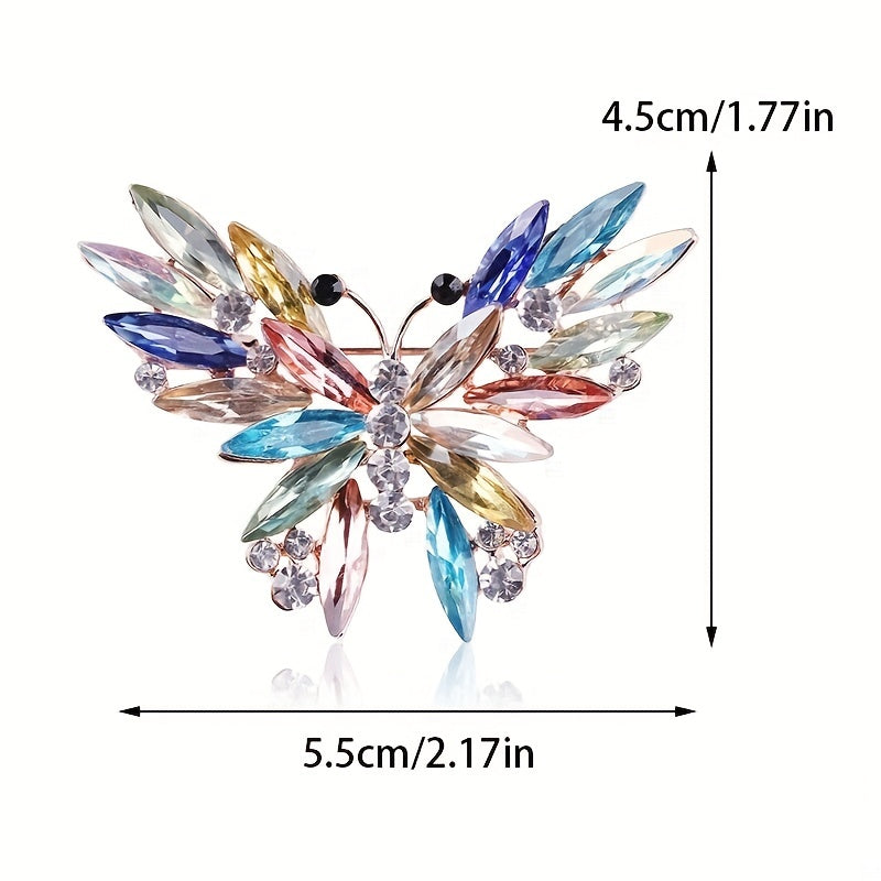 Add a touch of elegance to your outfit with this stunning Crystal Glass Butterfly Brooch. This brooch is perfect for women who love to accessorize and add a touch of sparkle to their look. It features intricate details and sparkling rhinestones that catch the light beautifully.