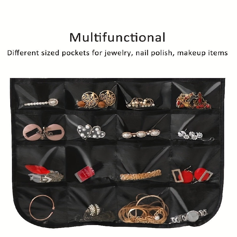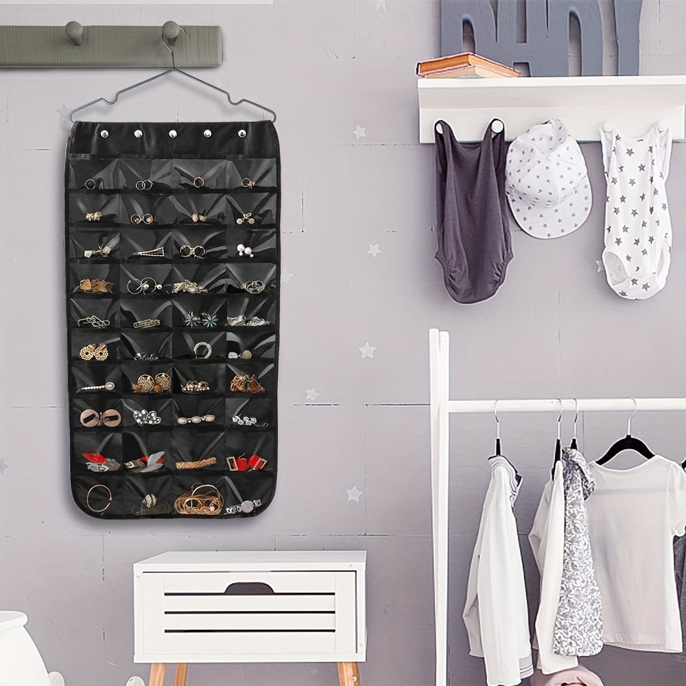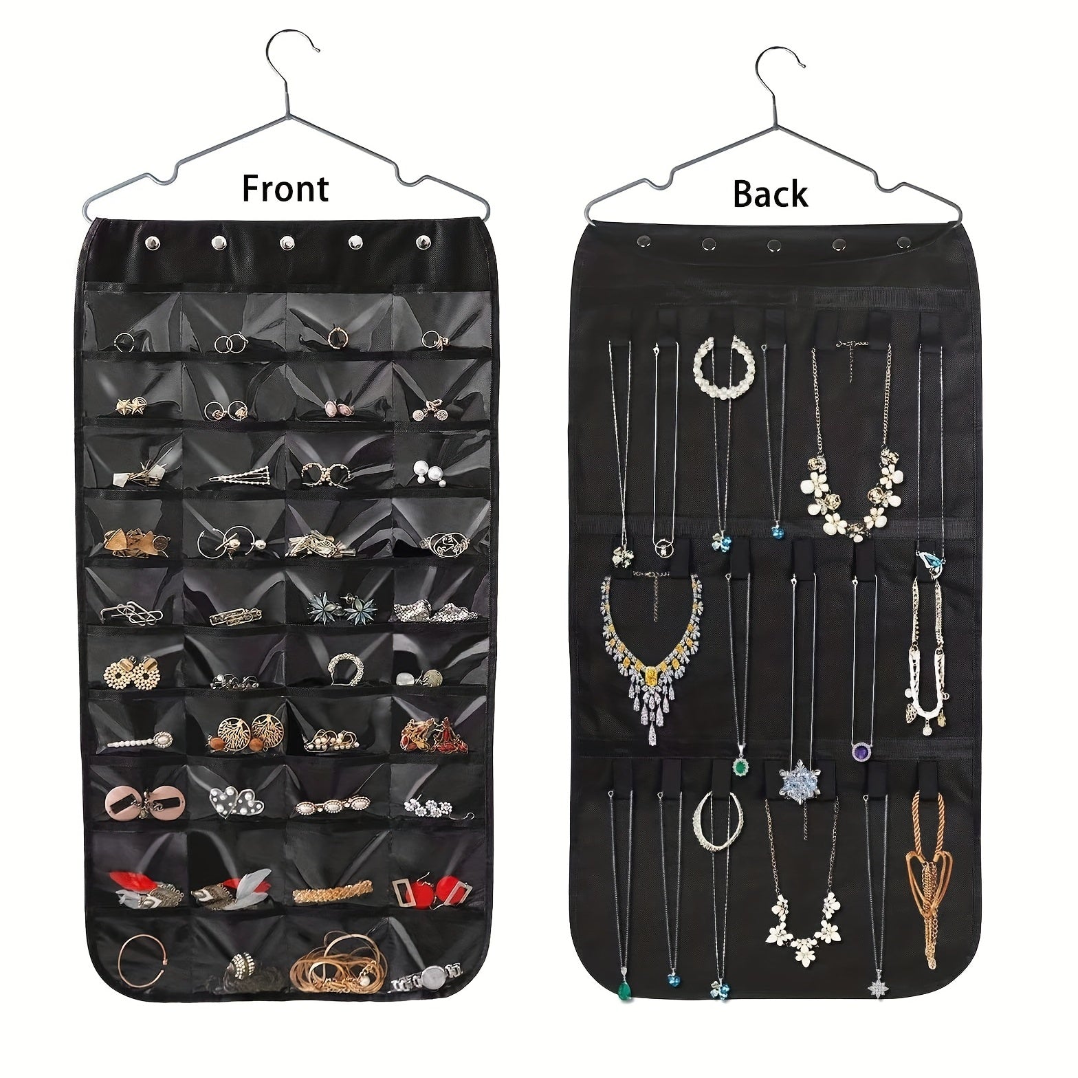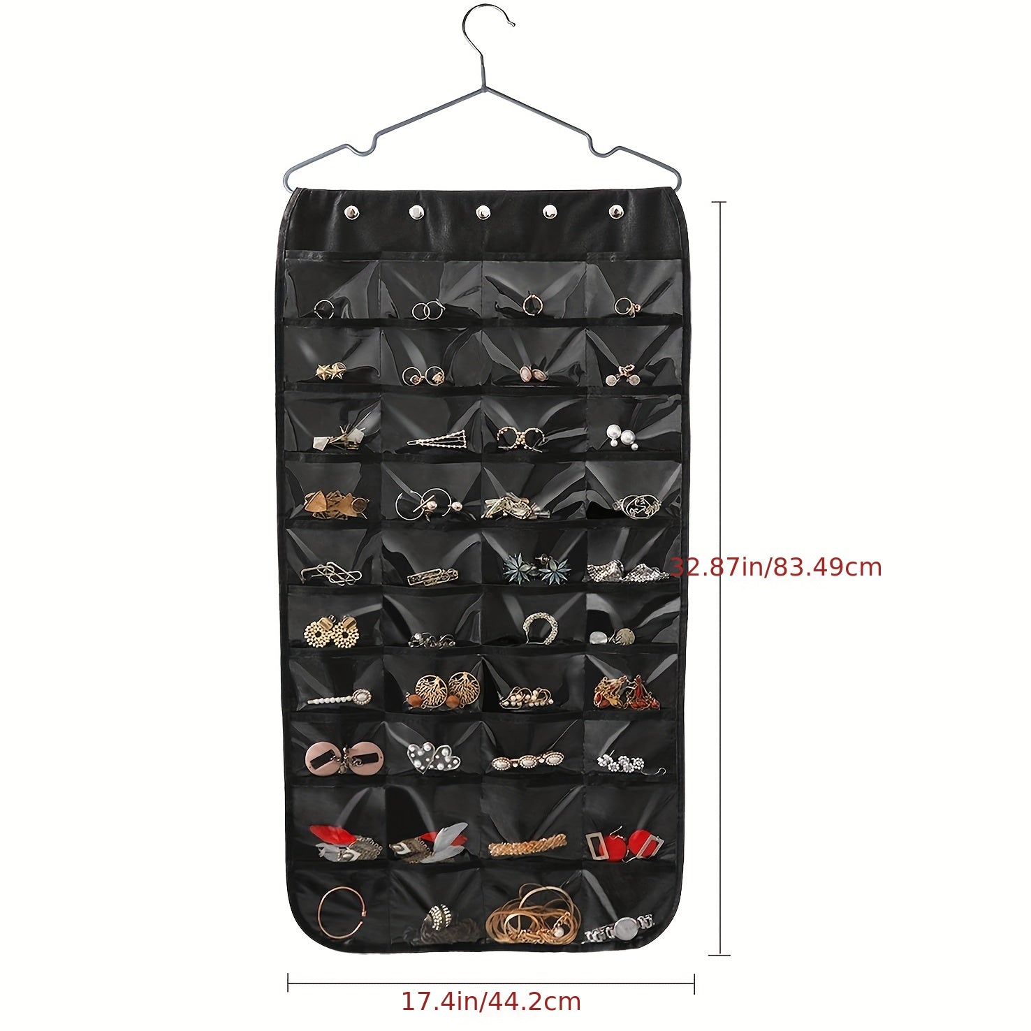 This hanging jewelry organizer features 40 pockets on each side, providing ample storage for your jewelry collection. The double-sided design allows you to easily access your accessories.