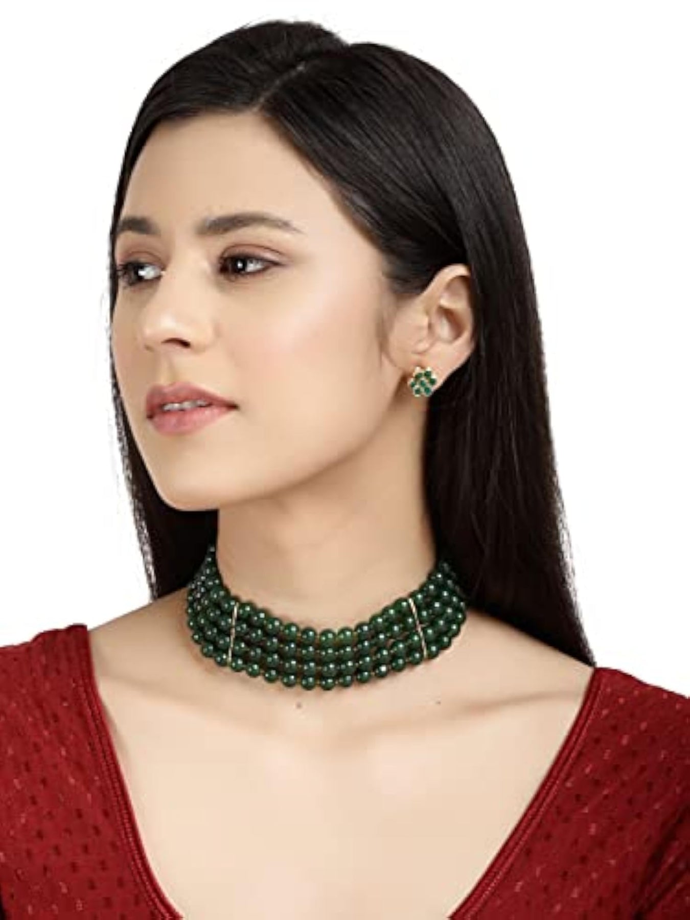 Add a touch of elegance to your outfit with this traditional pearl choker necklace set.
