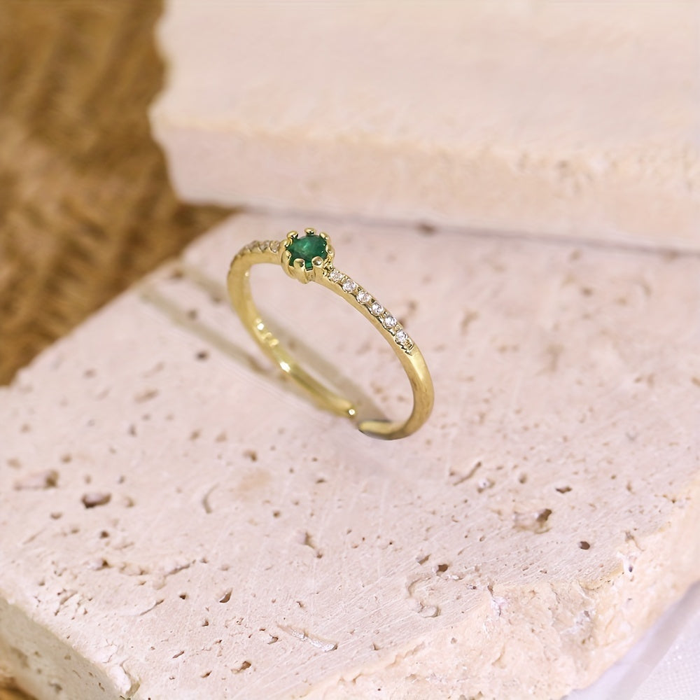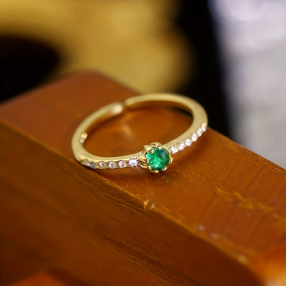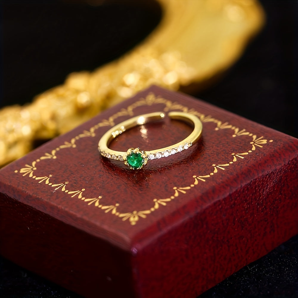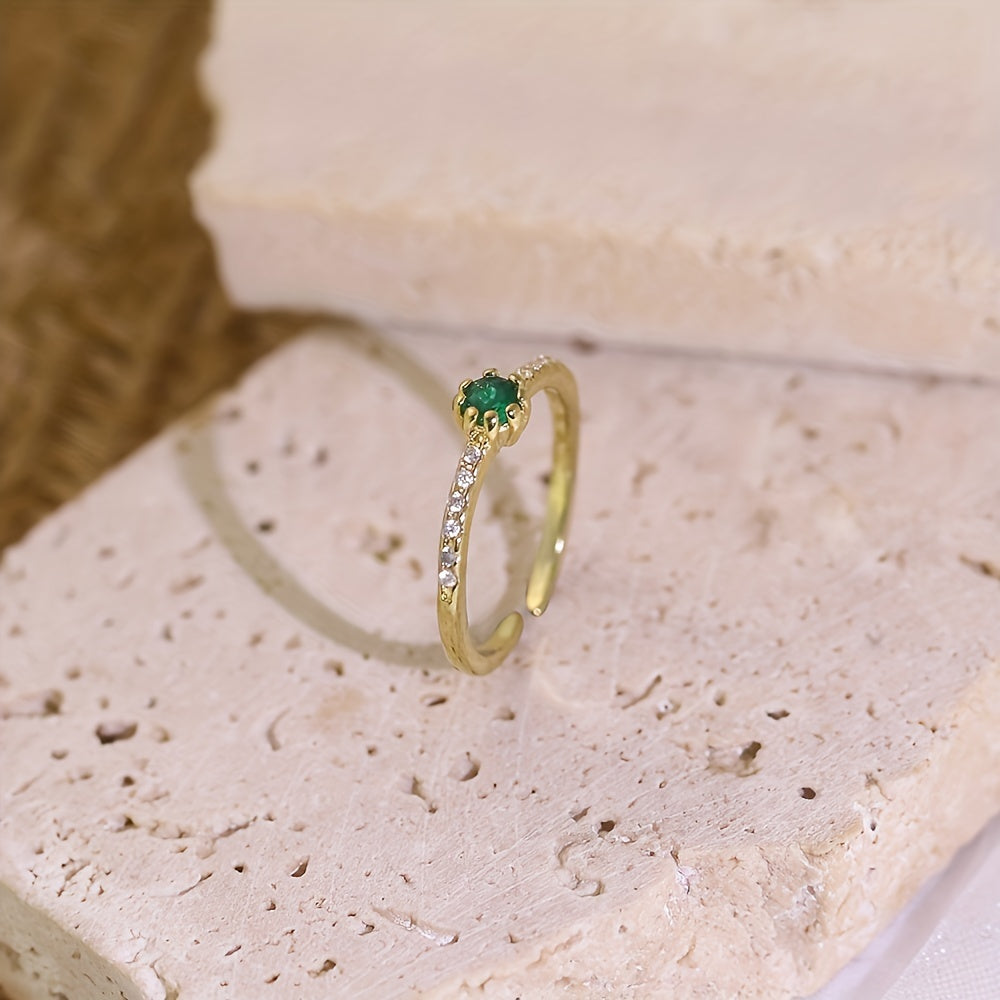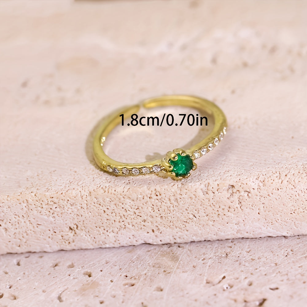 Emerald Zircon Decor Zinc Alloy Open Ring For Men