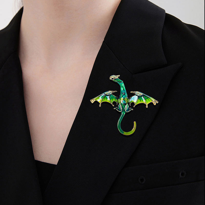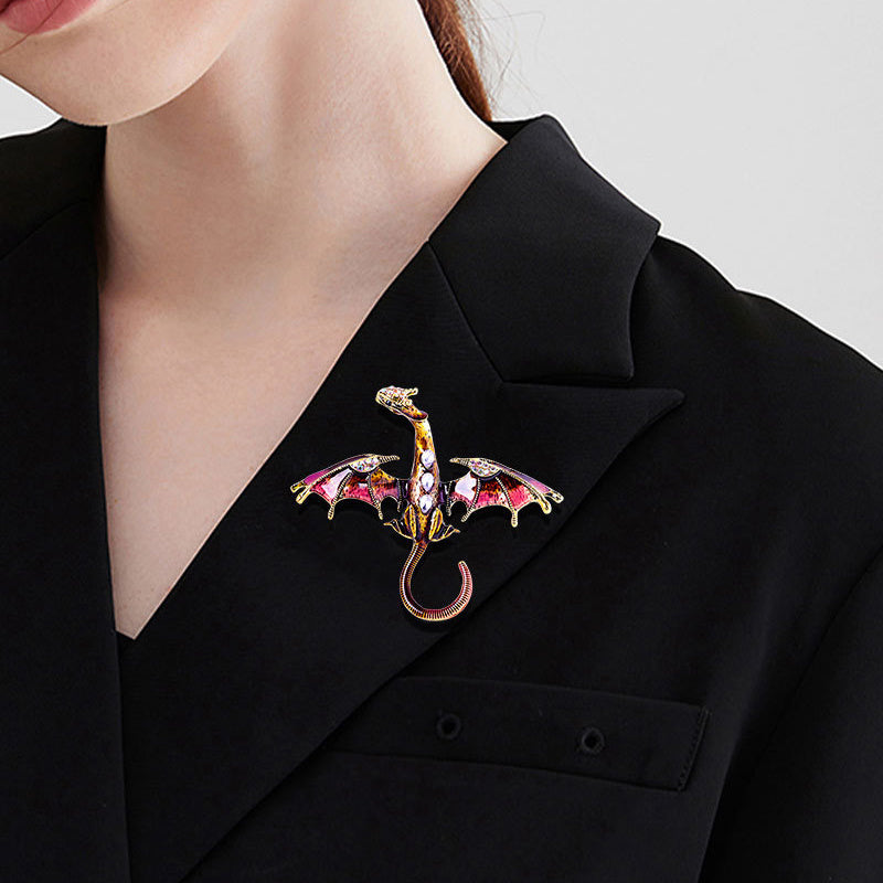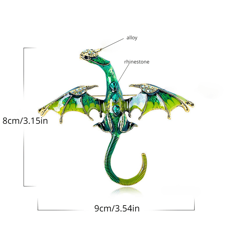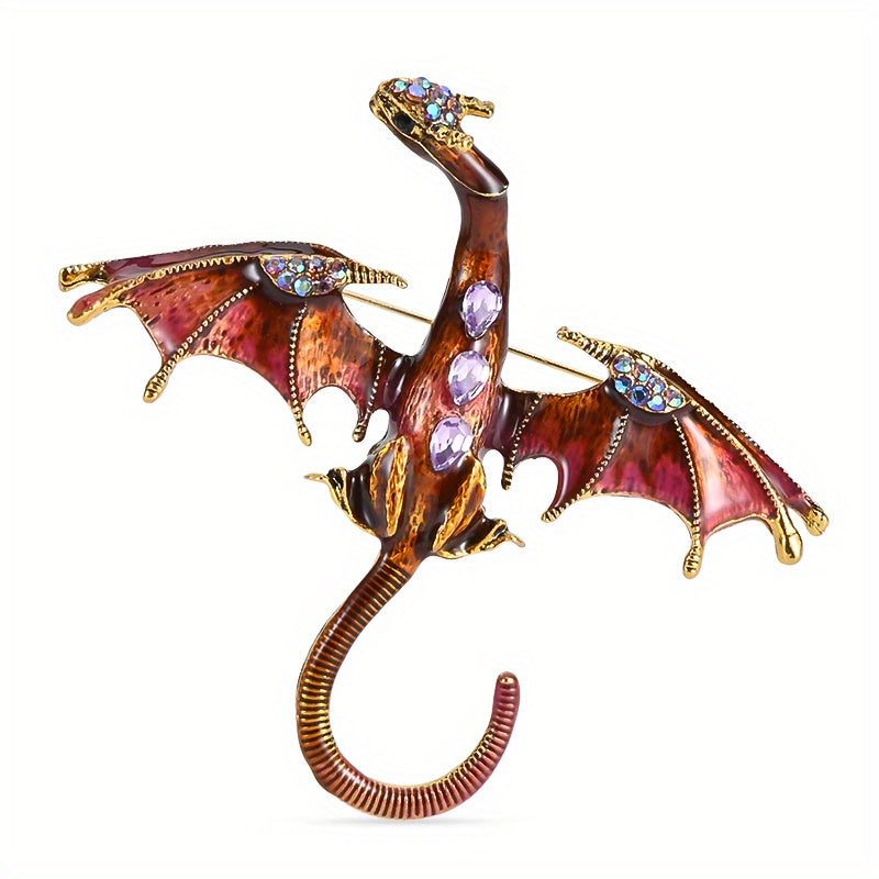 Add a bold and unique touch to your outfits with this enamel dragon brooch featuring inlaid rhinestones. Perfect for adding a touch of mystique and style.