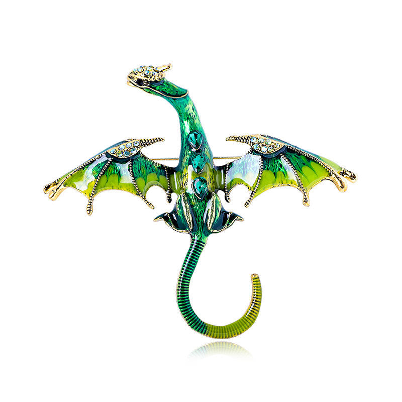 Enamel Dragon Brooch w/ Rhinestones - Unique Clothing Accessory