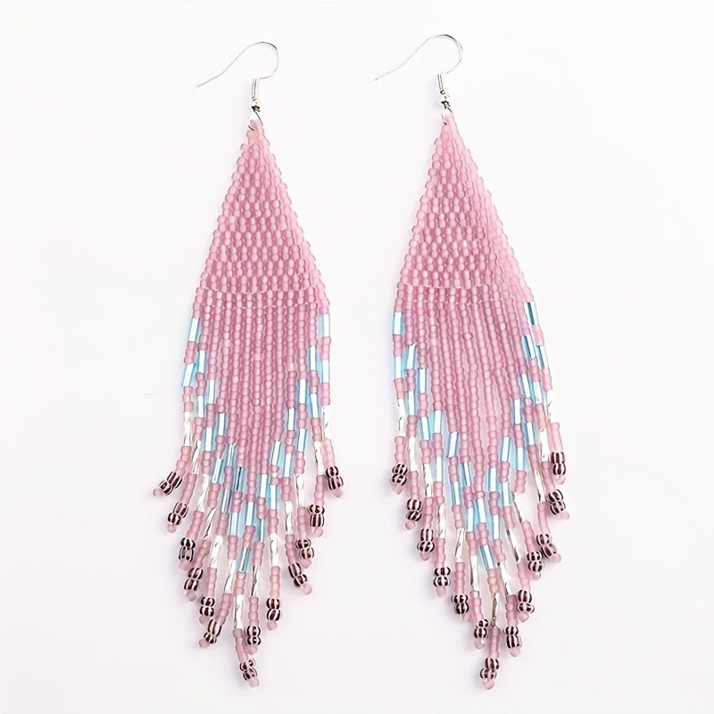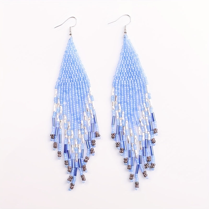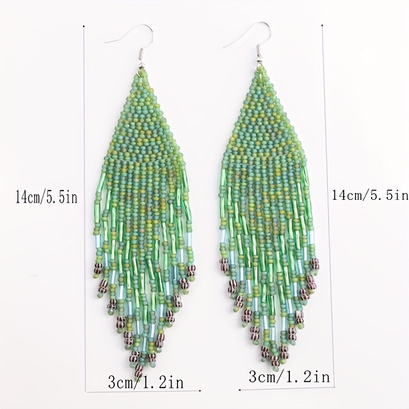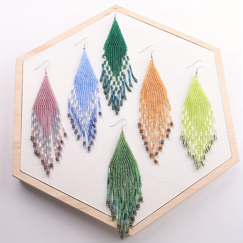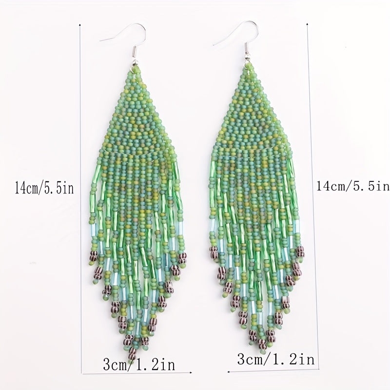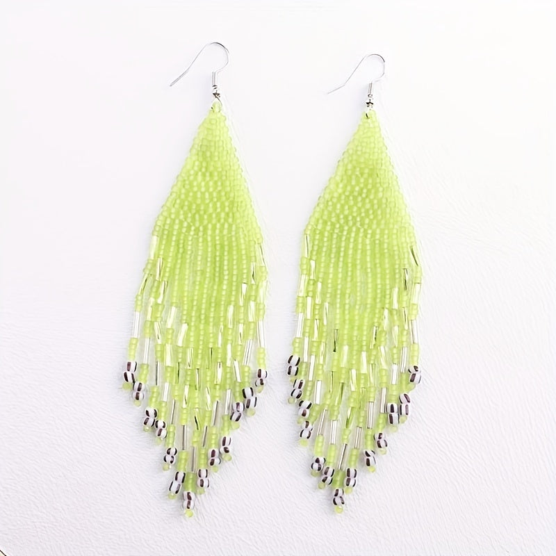 Ethnic-inspired pure colored glass bead tassel earrings for a bohemian look. Perfect accessory for cross-border fusion fashion.