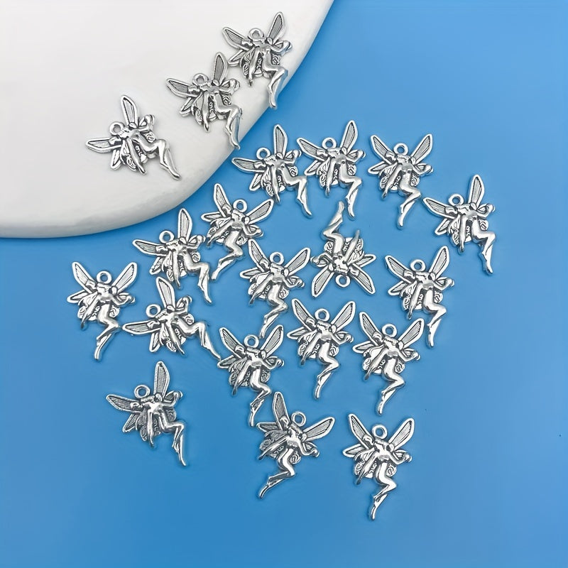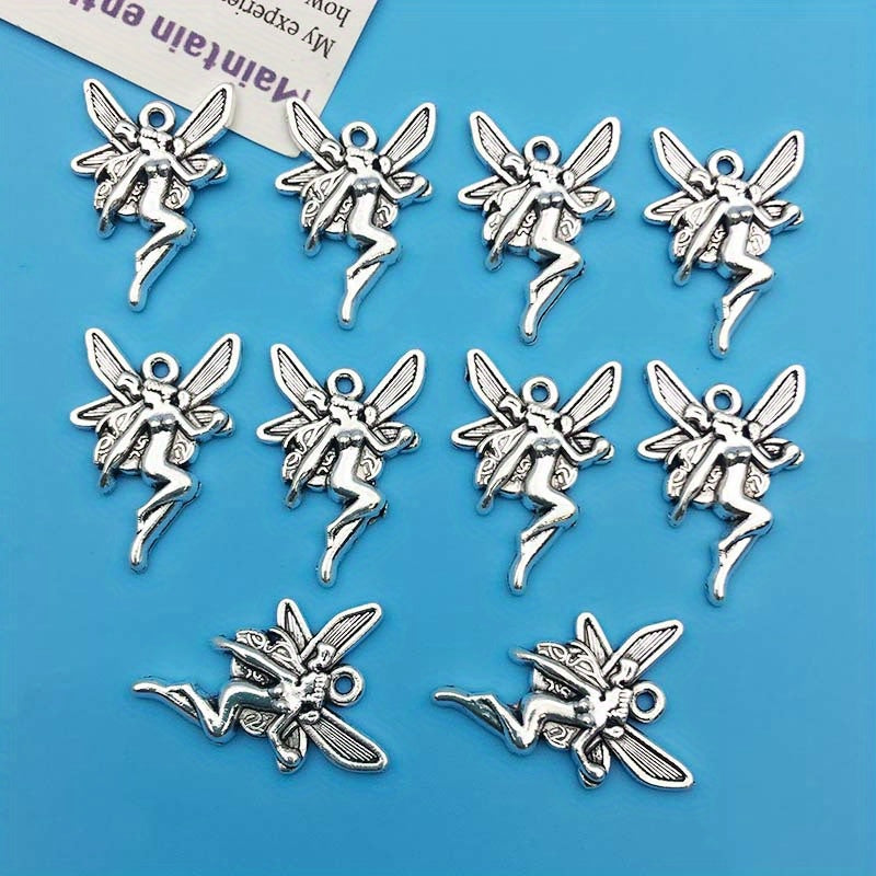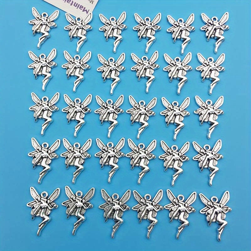 Get a set of 10, 20, or 30 charming angel fairy shape charms pendants for your DIY jewelry projects. Made of zinc alloy in antique silver finish, perfect for necklaces, bracelets, and earrings.