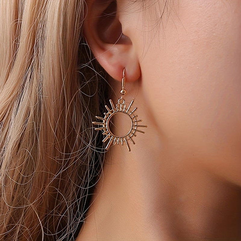 Elegant and stylish sun-shaped alloy earrings for a trendy look.