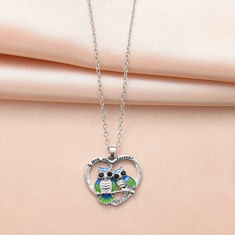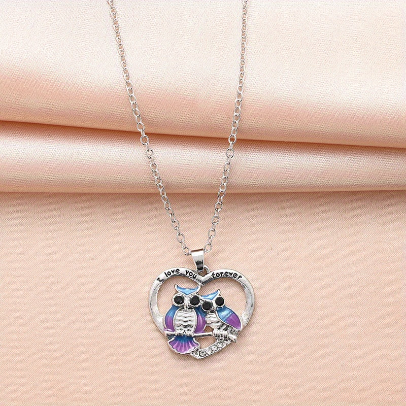 Faux Diamond Owl Pendant Star Moon Love Necklace for Men