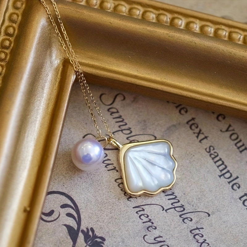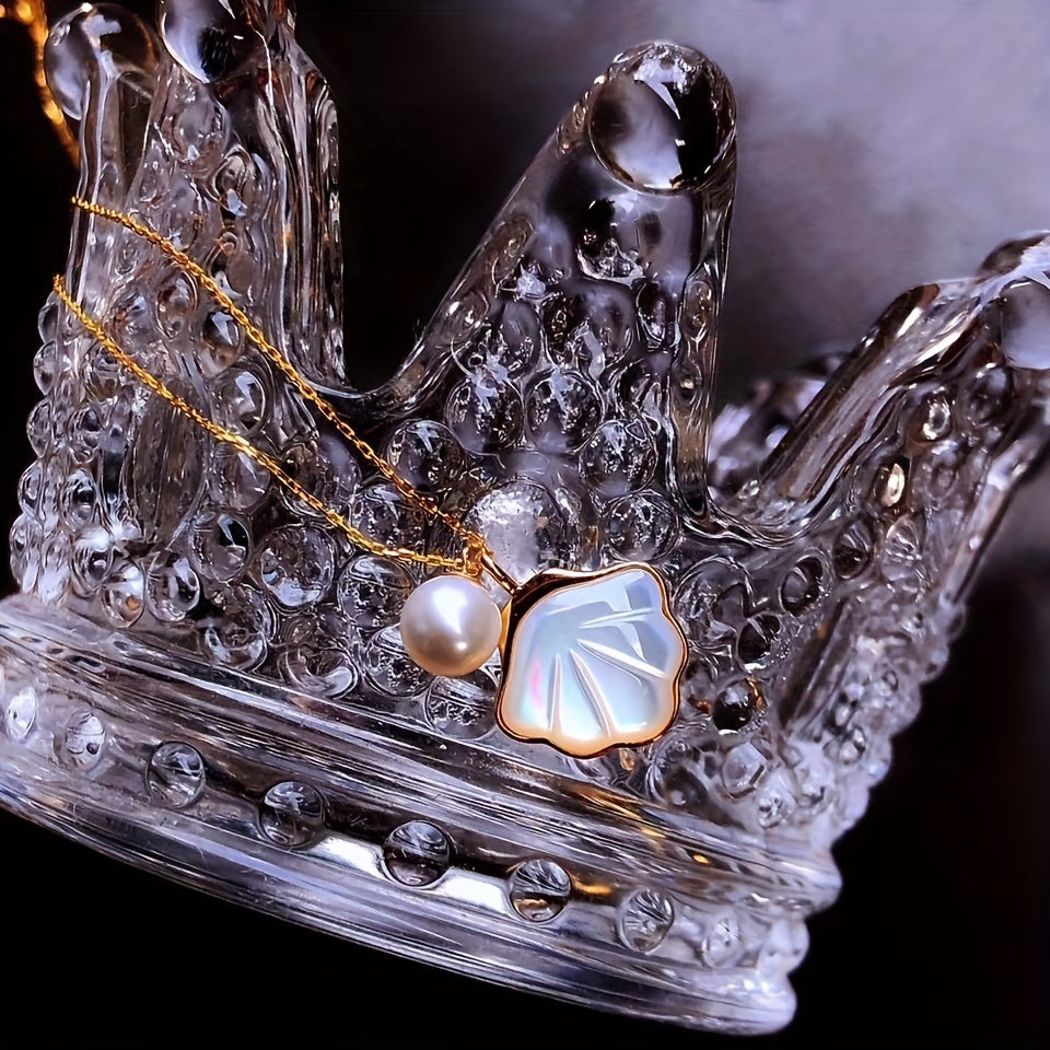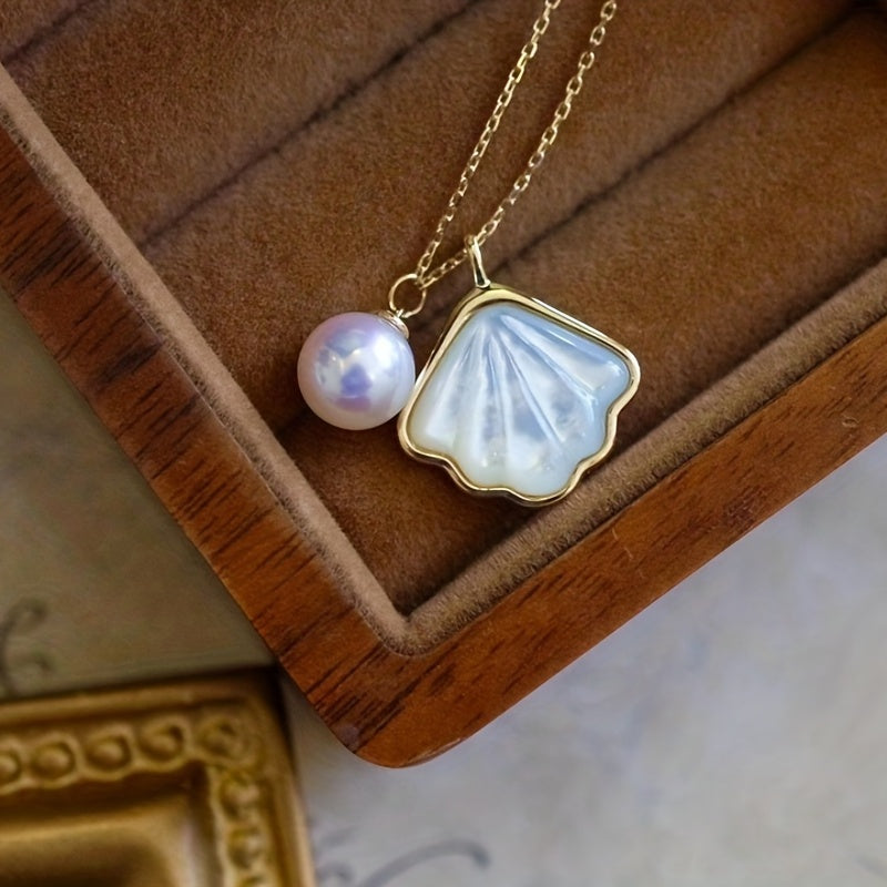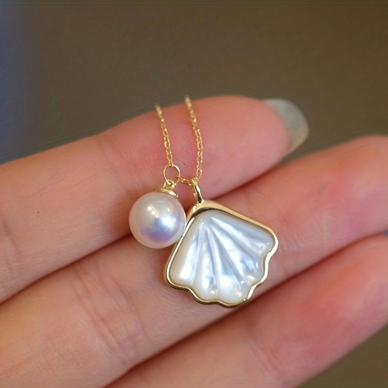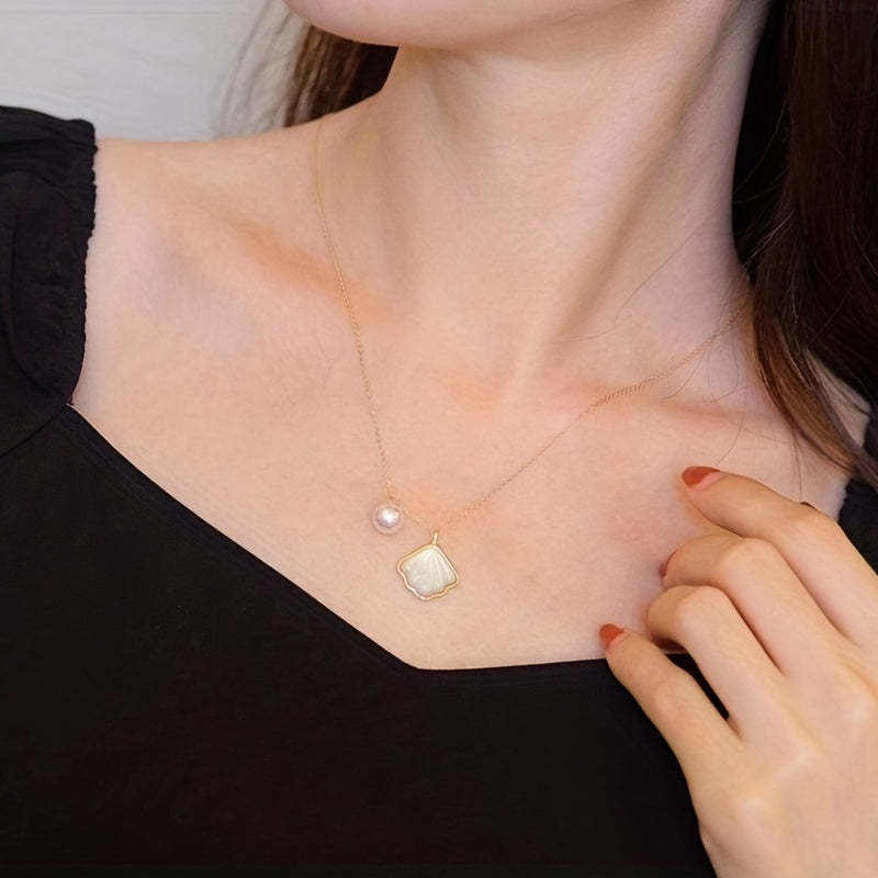 Elegant necklace featuring faux pearl and shell charm pendant. Perfect for adding a touch of style to any outfit.