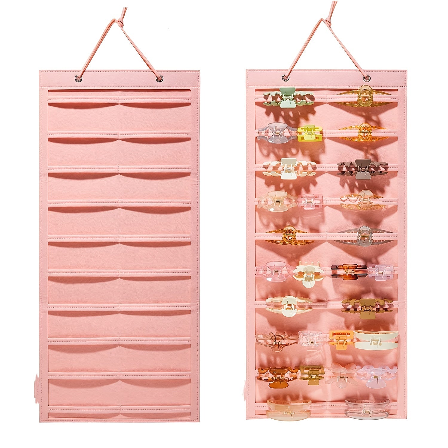 This felt hanging bag is perfect for organizing hairpins and clips. Hang it on the wall or door for easy access and storage.