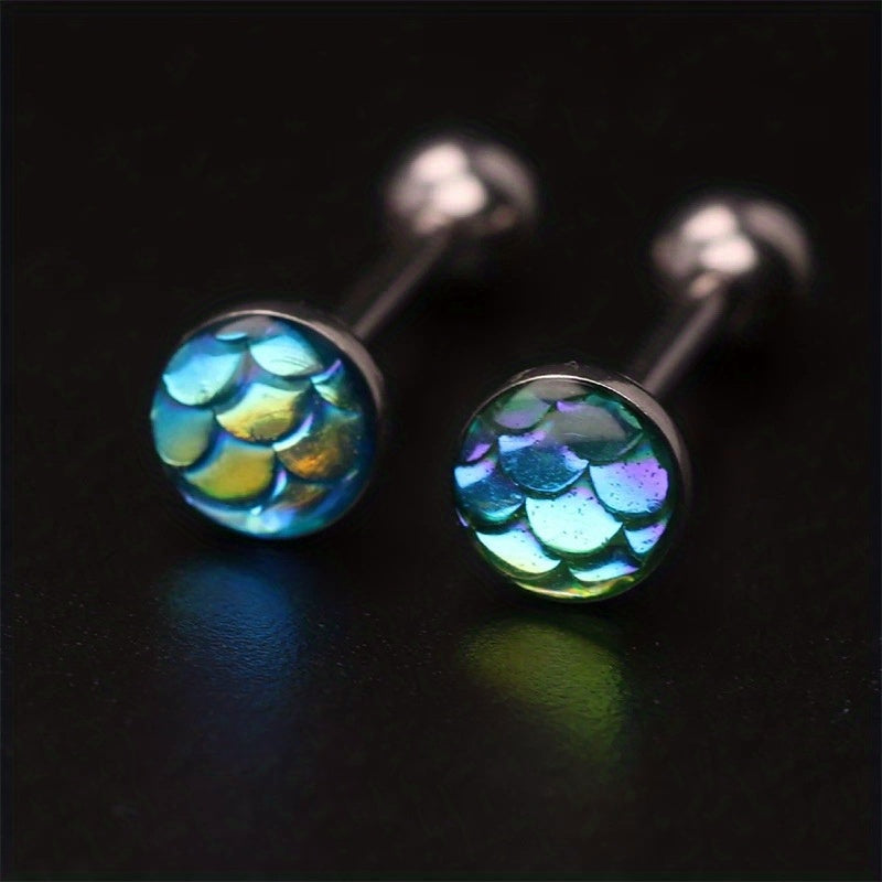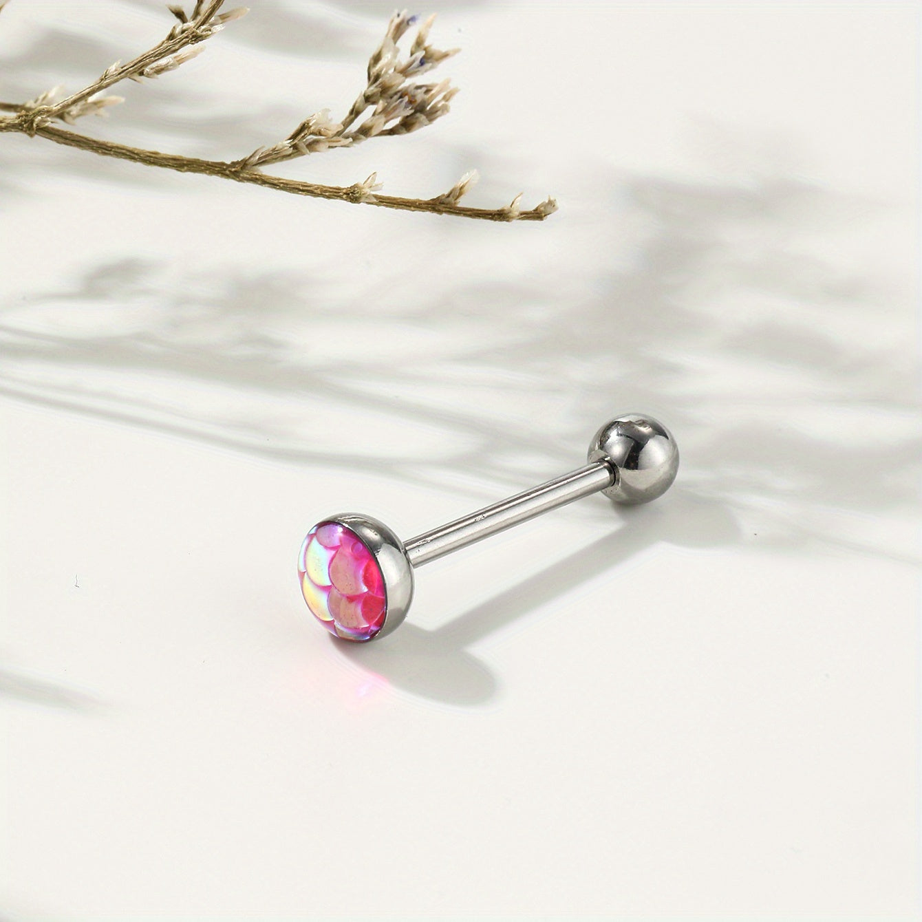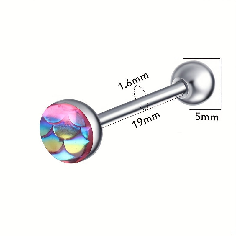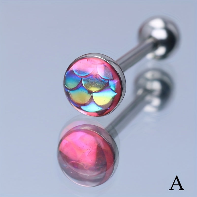 Add a unique touch to your tongue piercing with this hot fish scale gradient tongue stud. Made of durable stainless steel with scale drop oil for a sleek look.