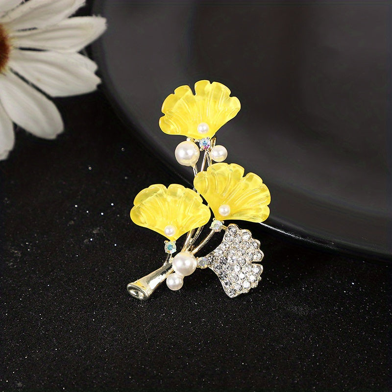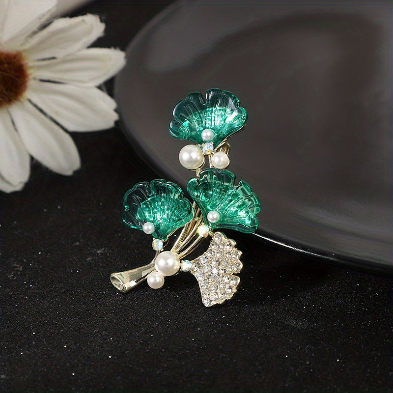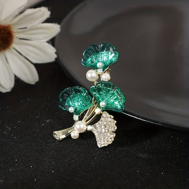 Enhance your outfit with this elegant ginkgo leaf rhinestone brooch inspired by Chinese style. Perfect for collars, cheongsam, sweaters, suits, and more.