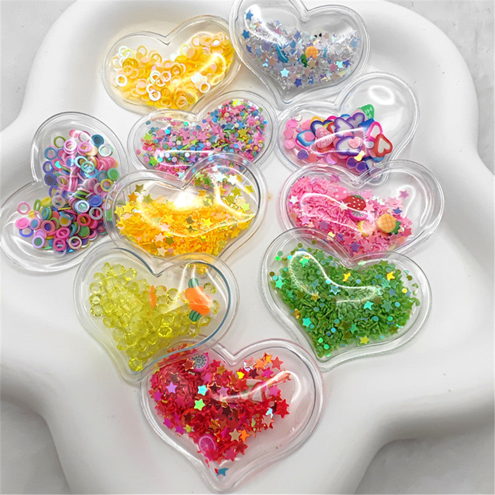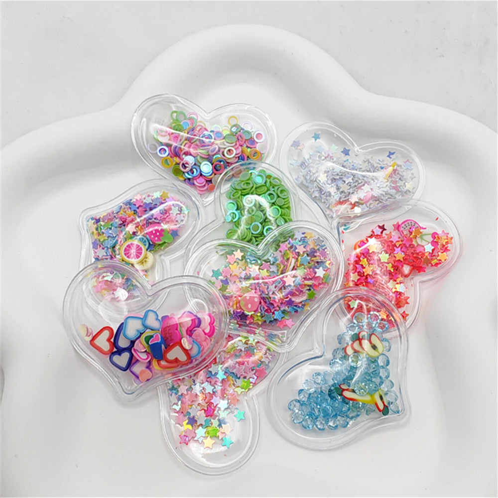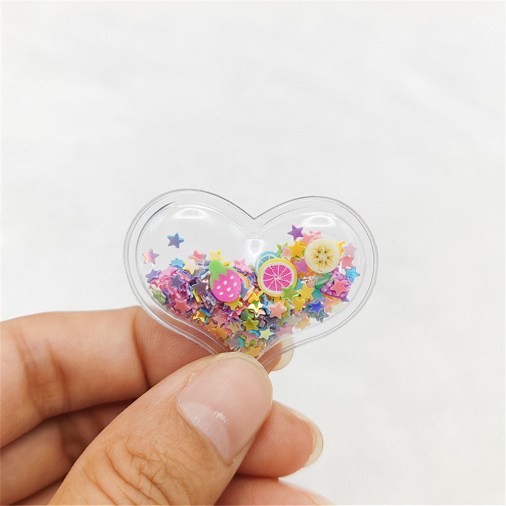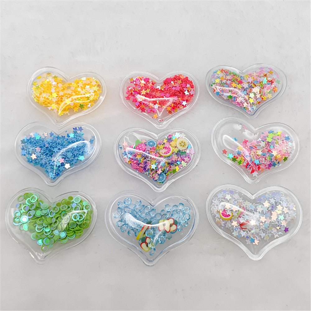 Adorable heart-shaped charms filled with colorful star sequins. Perfect for children and girls to add a touch of sparkle to their hair.