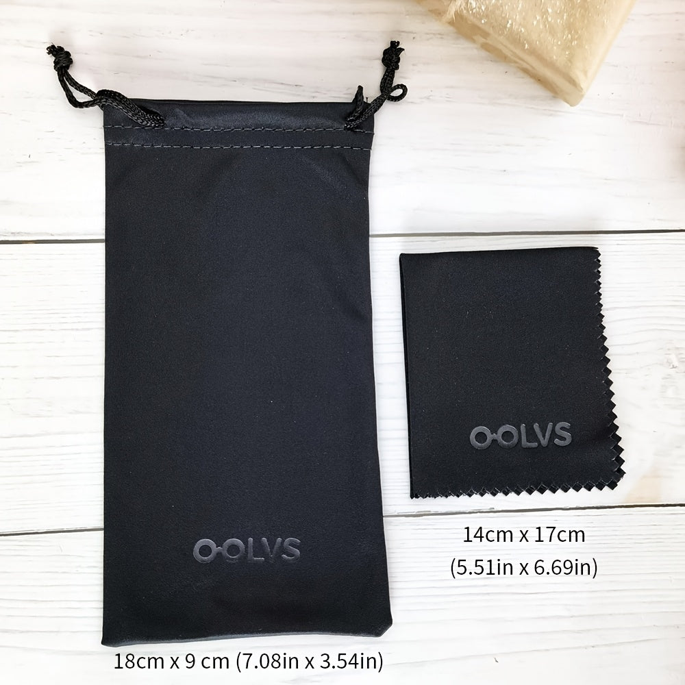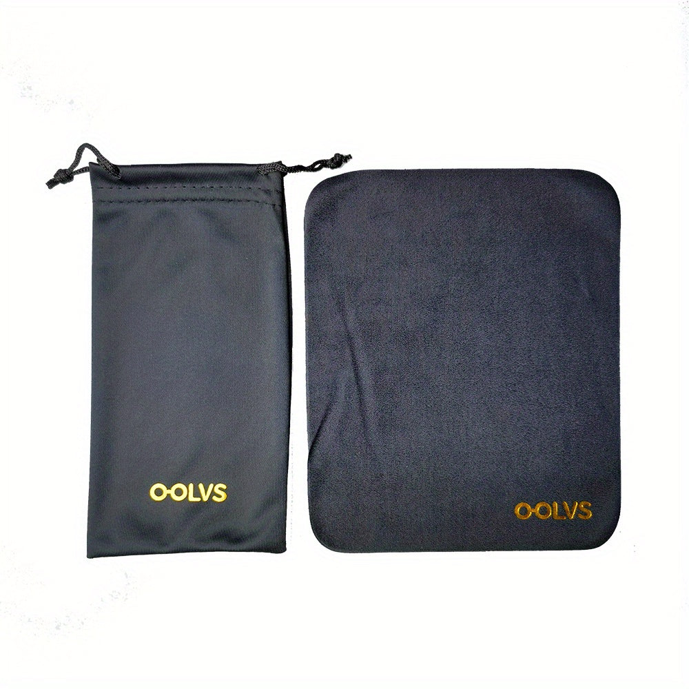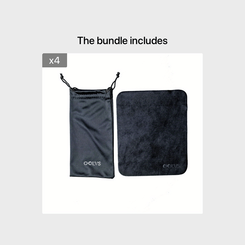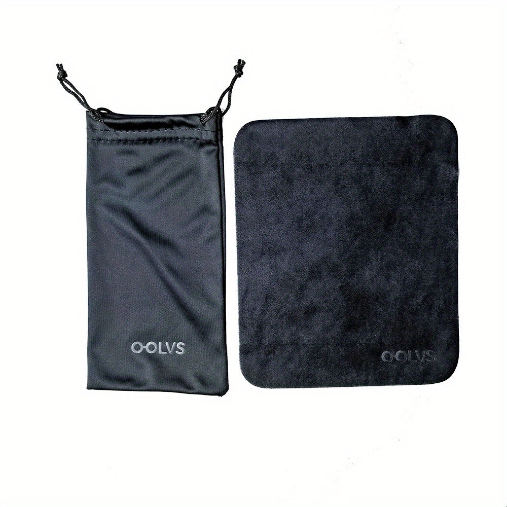 Keep your glasses, sunglasses, and jewelry safe and clean with this storage bag set. It includes a dust bag, cleaning cloth, and storage bag for easy organization.