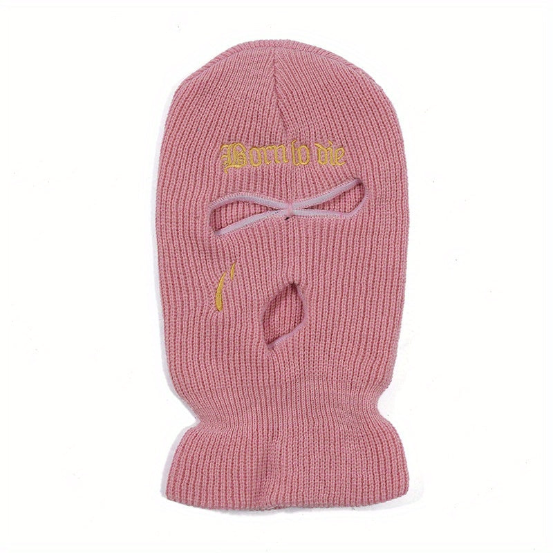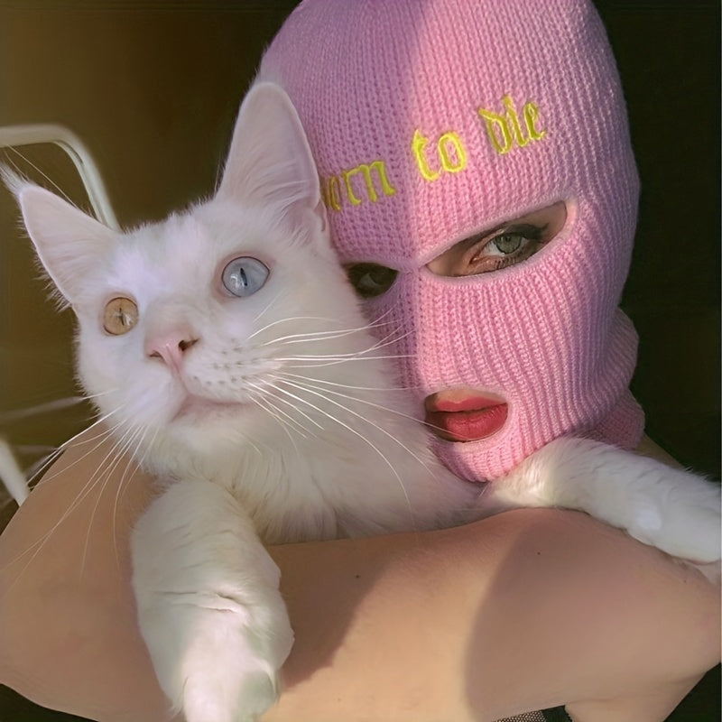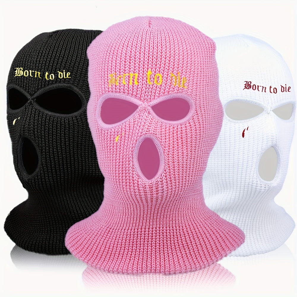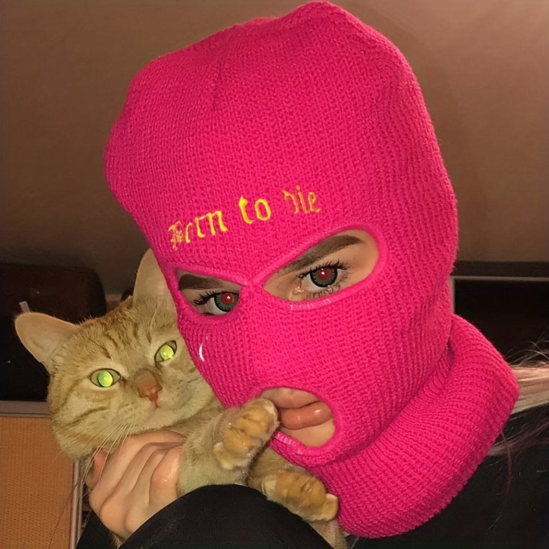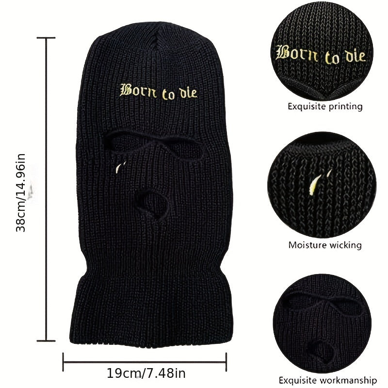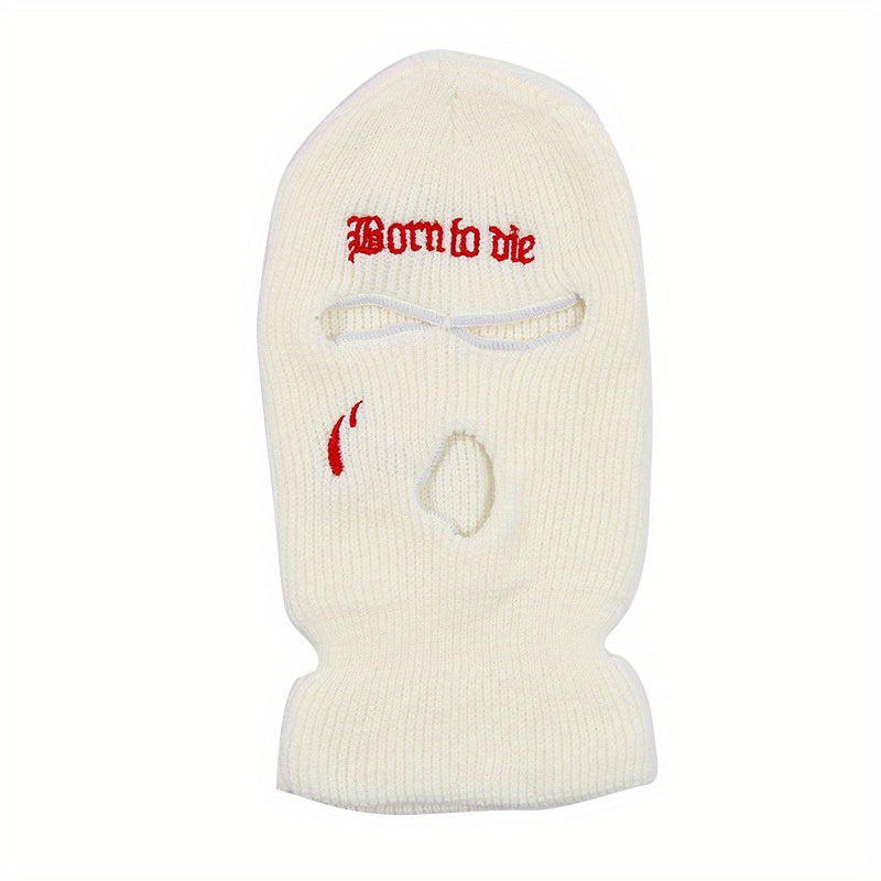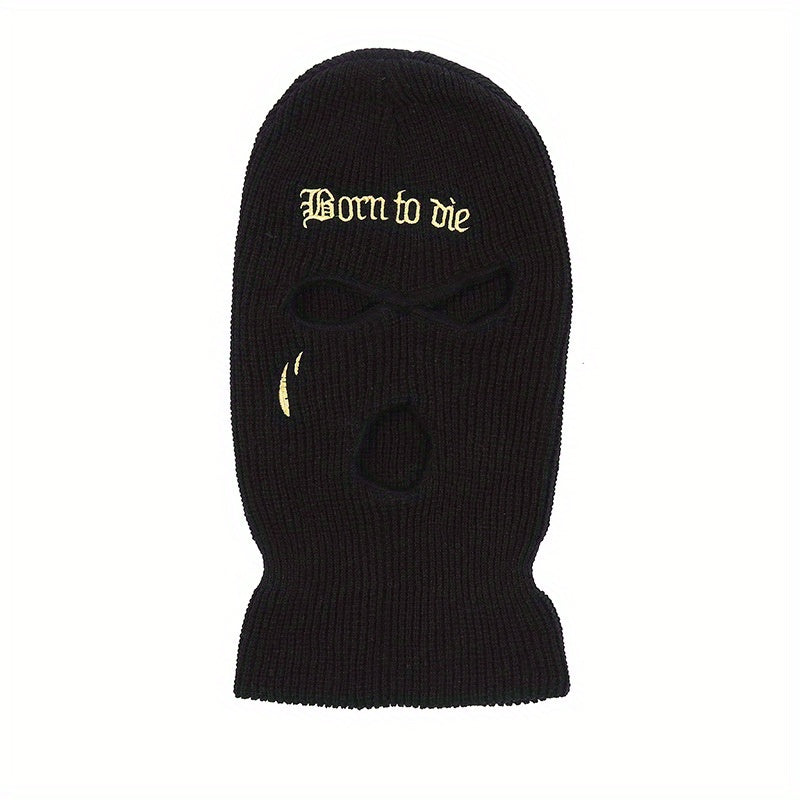 Stay warm and stylish with this gothic letter embroidered balaclava ski mask. It provides full face coverage and can also be worn as a beanie. Perfect for winter sports or outdoor activities.