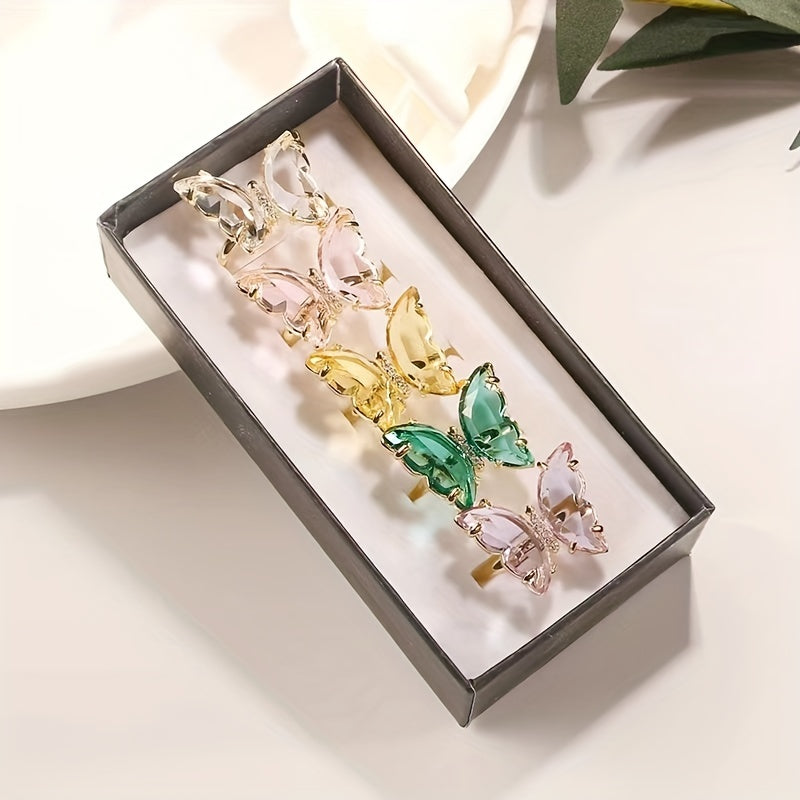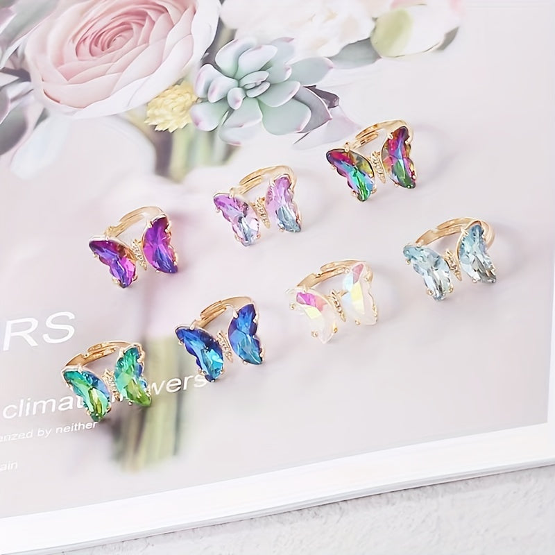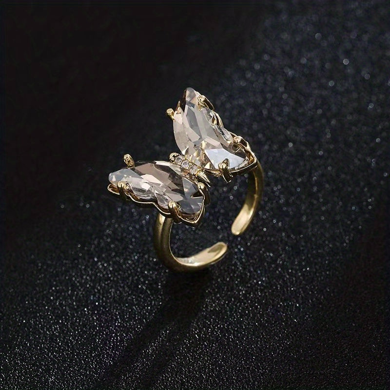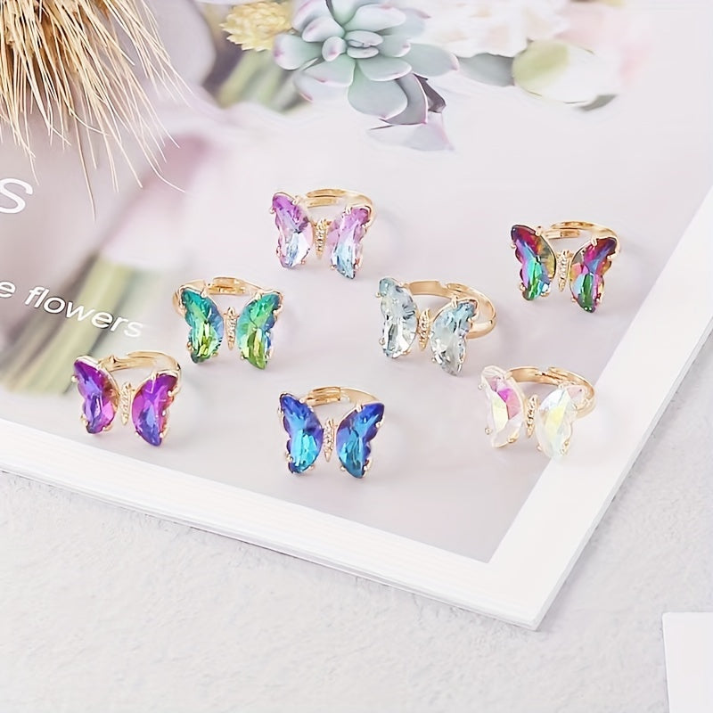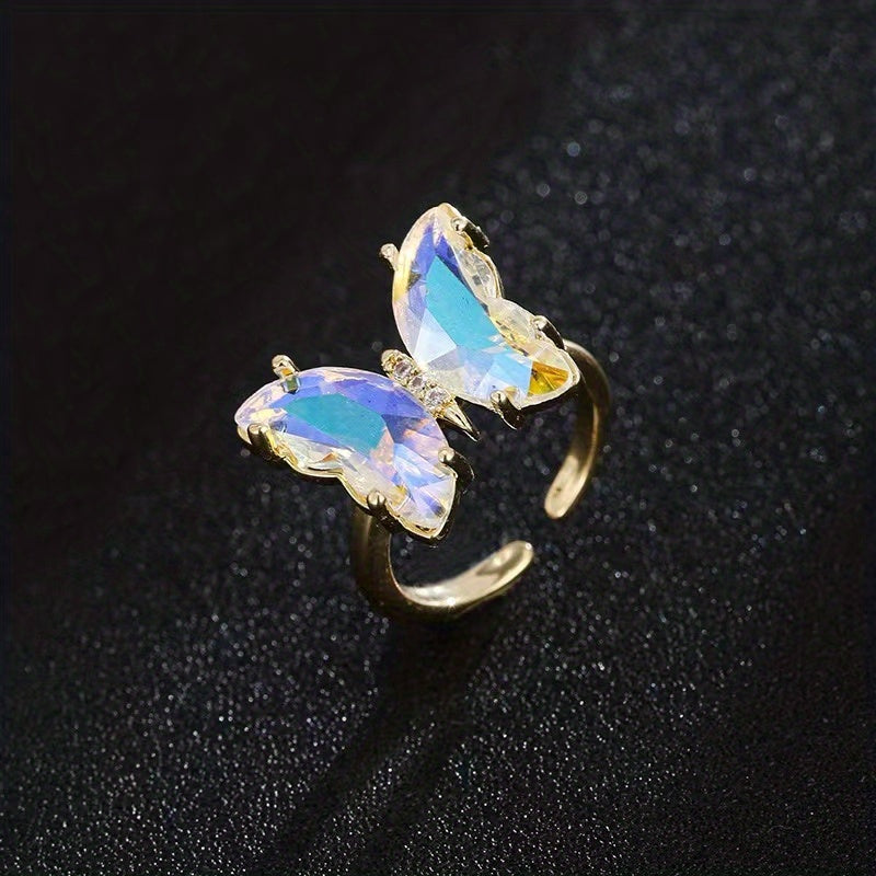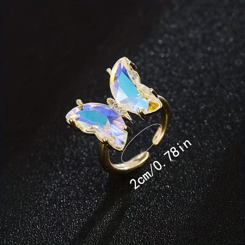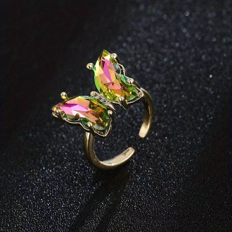 Add a touch of elegance with this stunning butterfly ring featuring gradient colorful zircon. The ring is adjustable to fit your finger size.