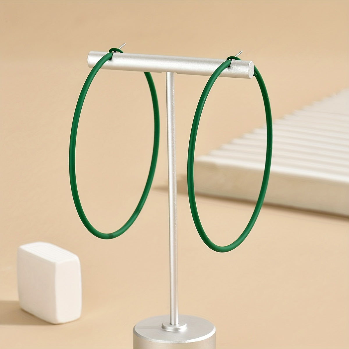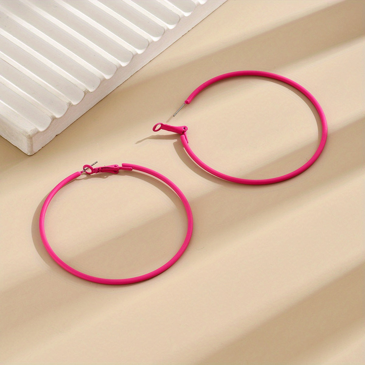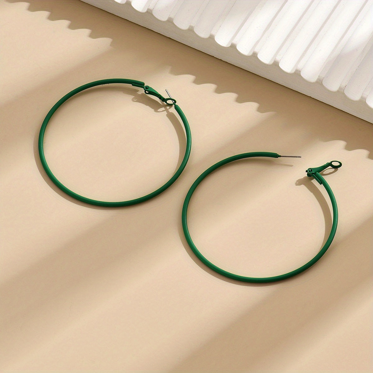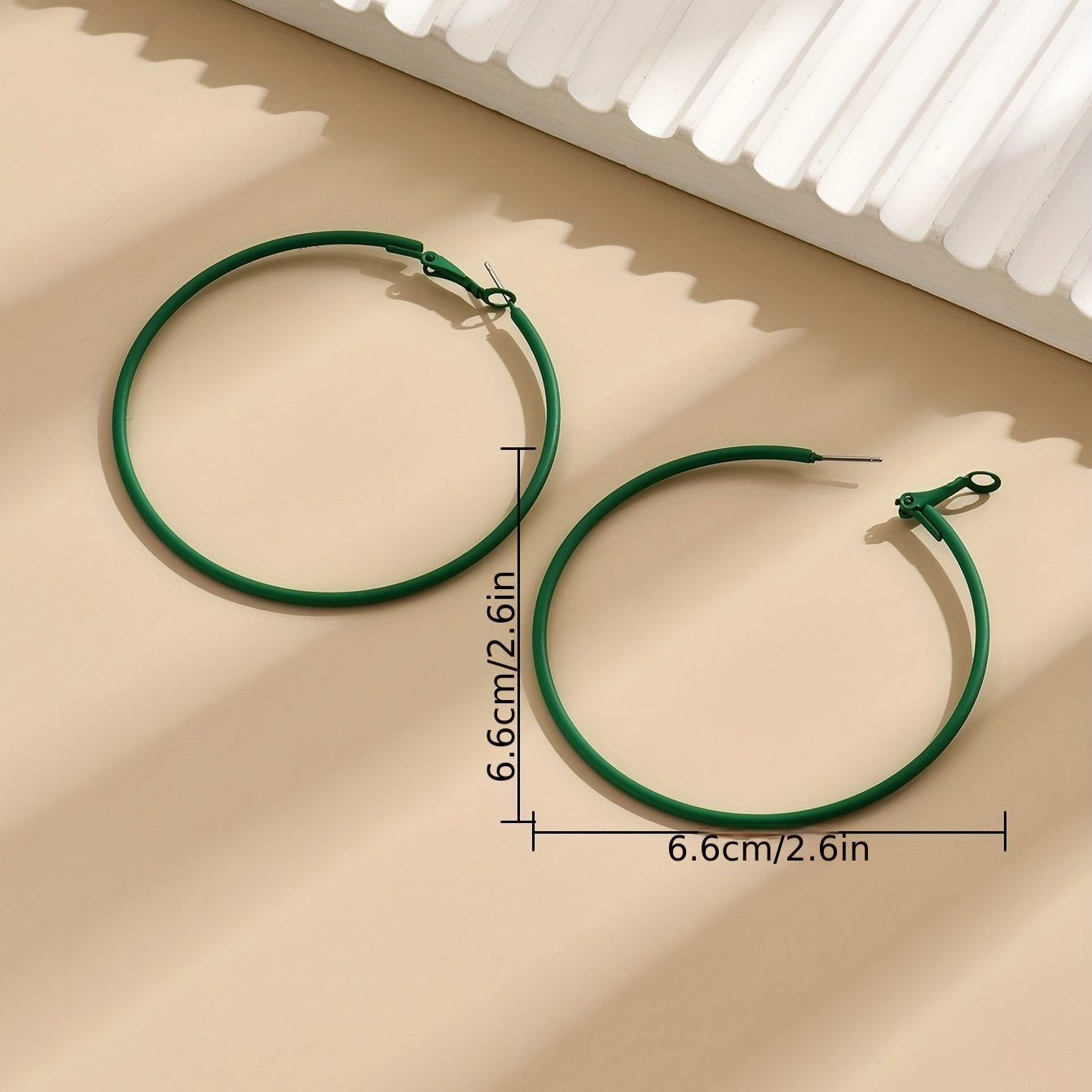 • Classic hoop earrings with a pop of green and pink color