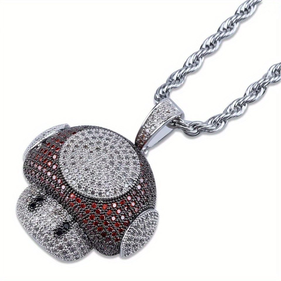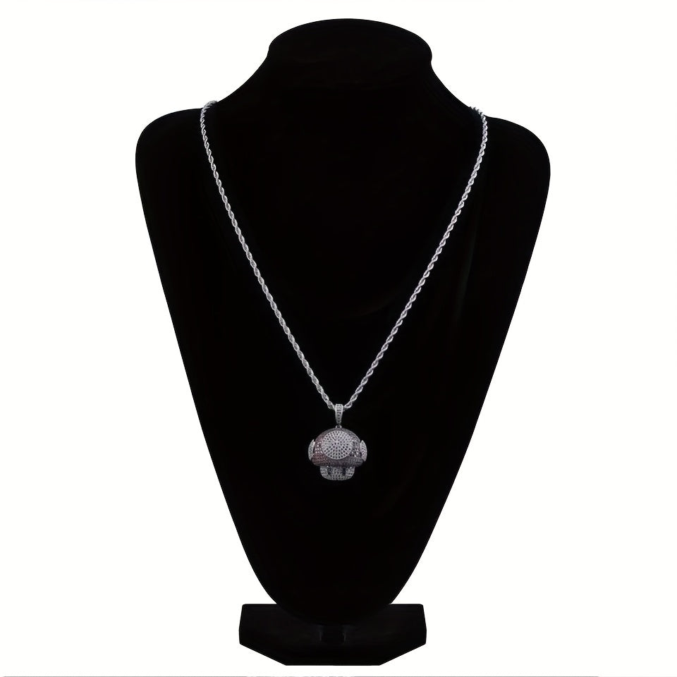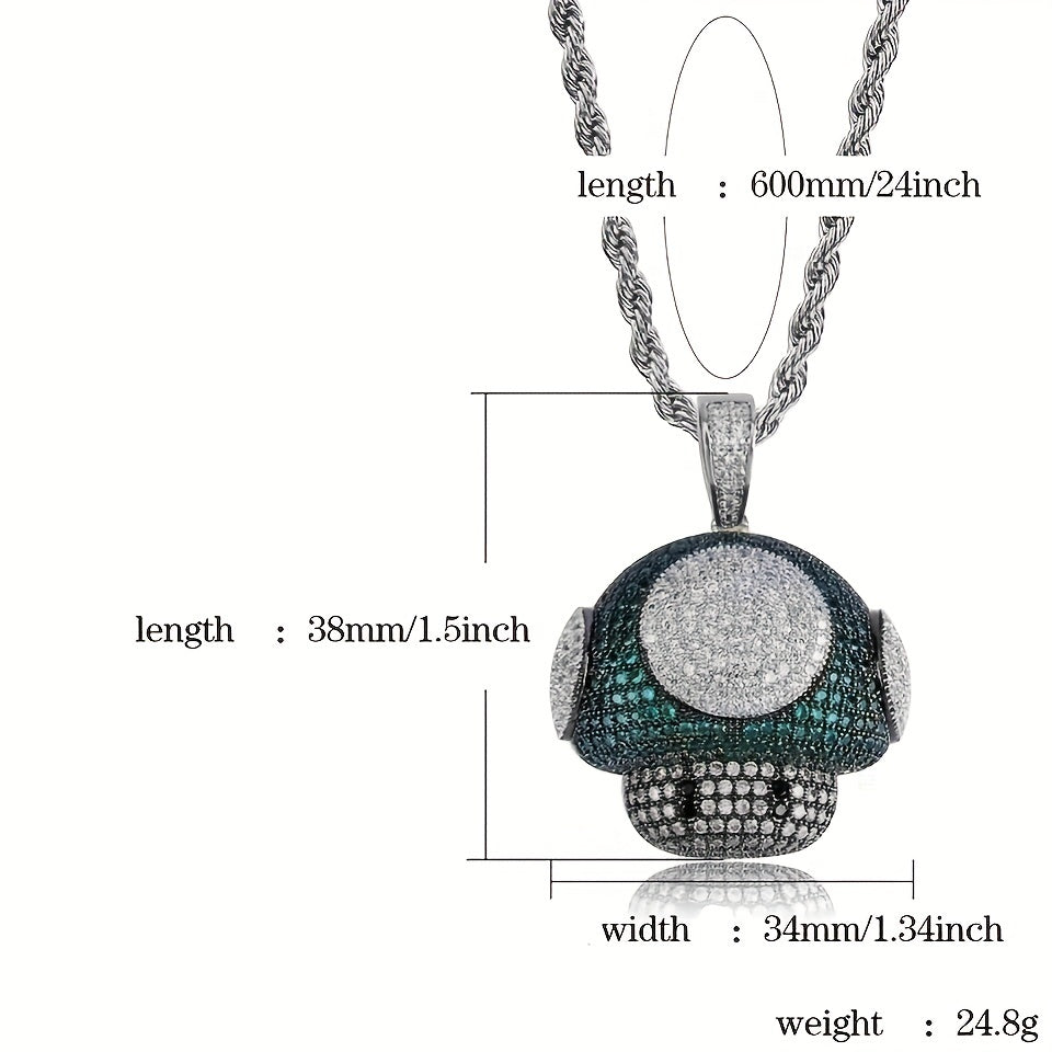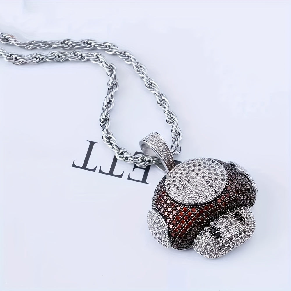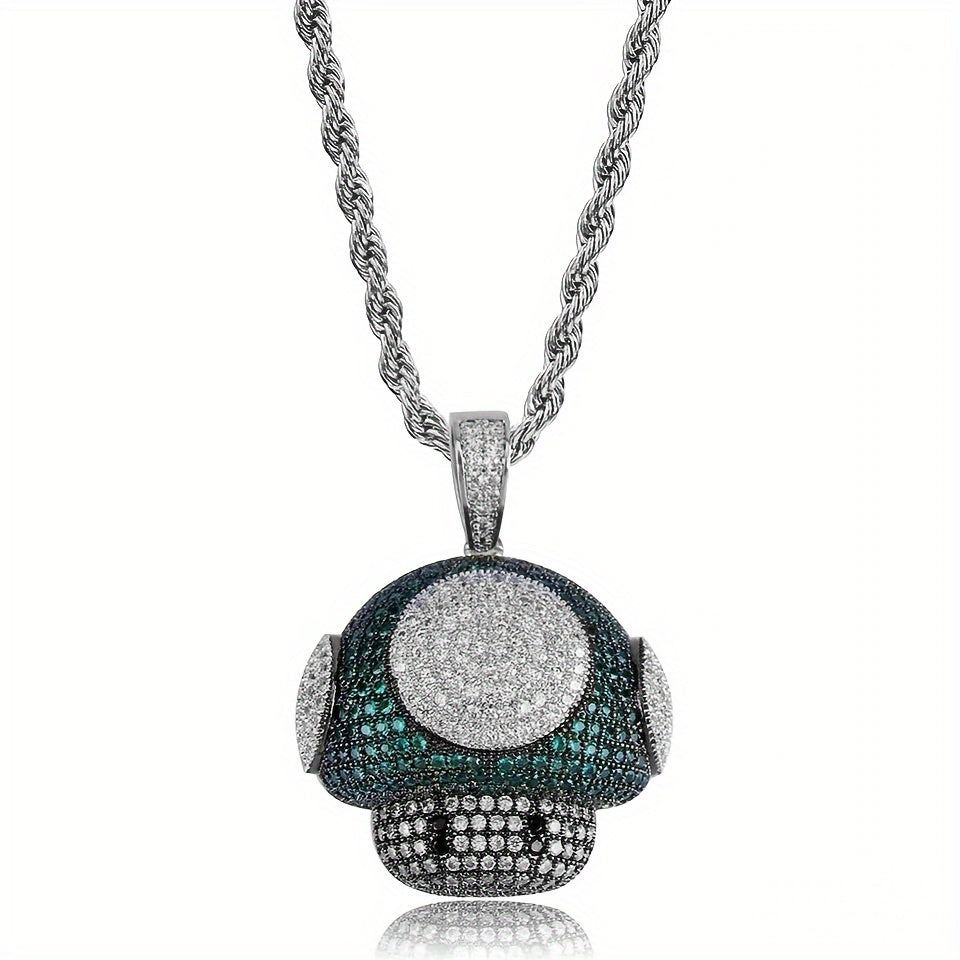 This stylish pendant necklace features an ice crystal zircon game mushroom design, perfect for hip hop and rock parties. Makes a great gift for men.