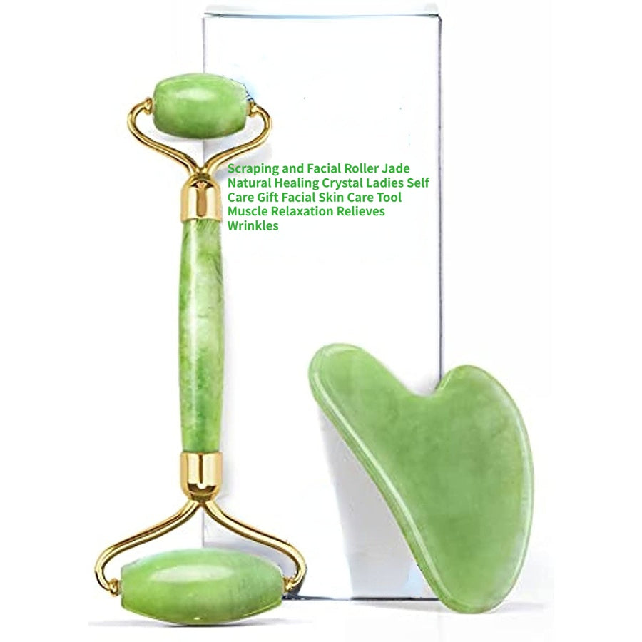 Jade Facial Roller & Scraper Set Natural Healing Crystal Self Care Tool