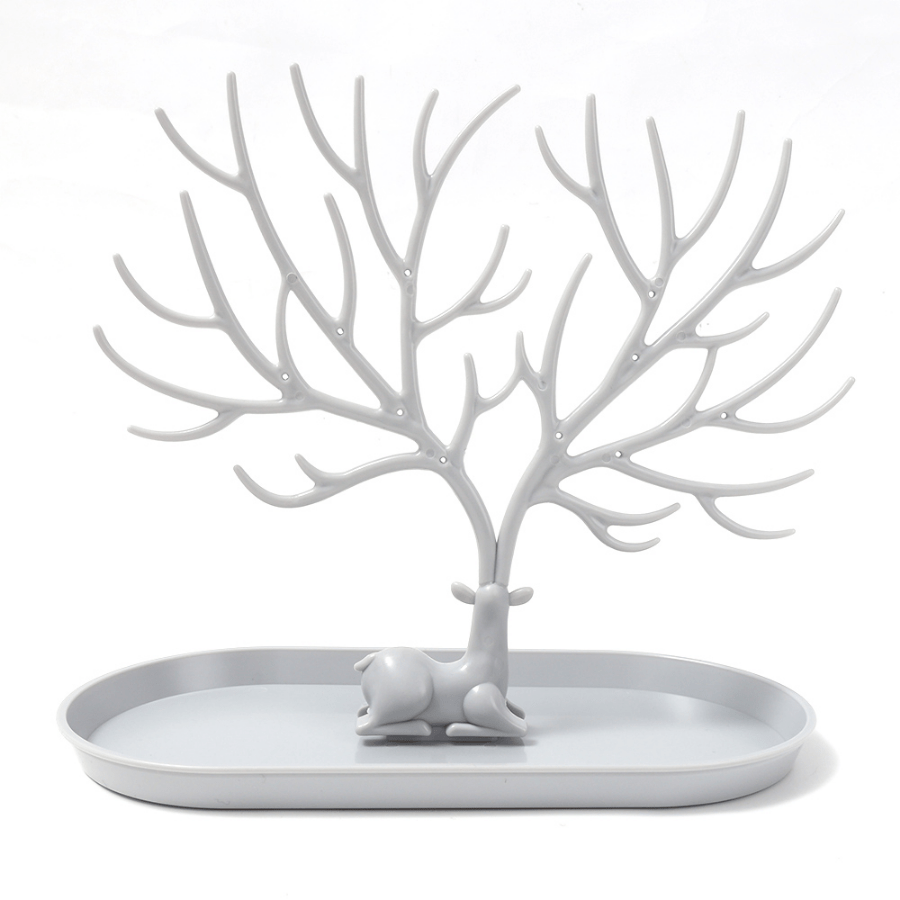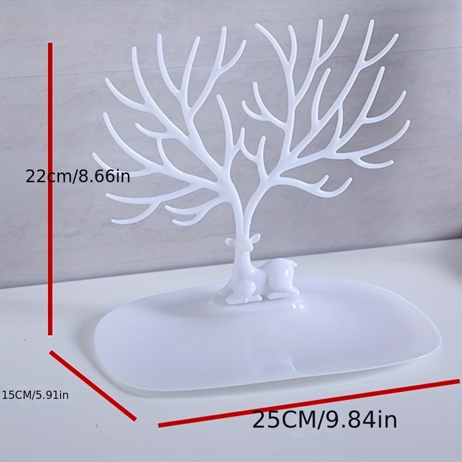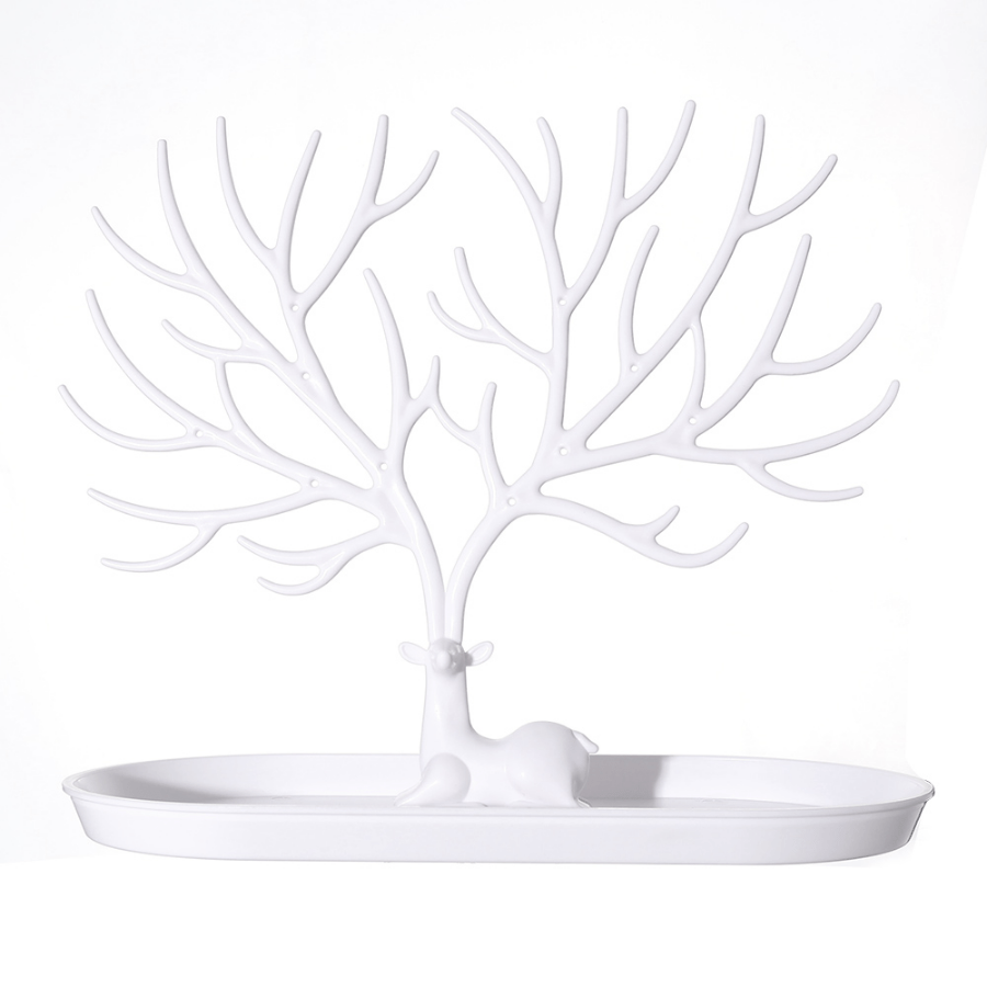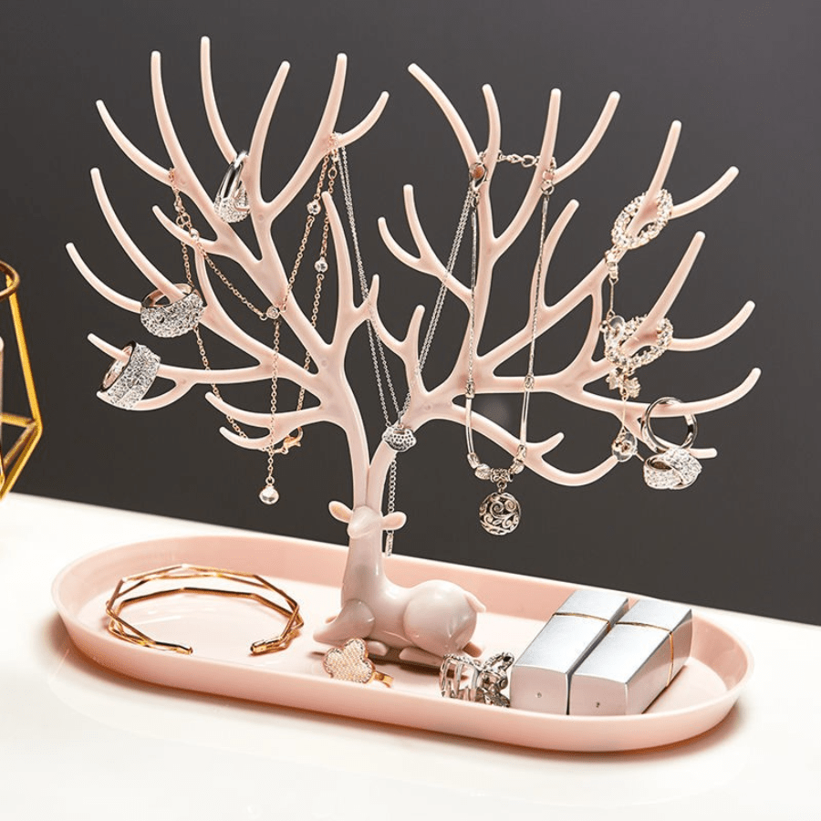 Organize your jewelry with this stylish display stand tray that also serves as a desktop organizer. Perfect for earrings, necklaces, and rings.