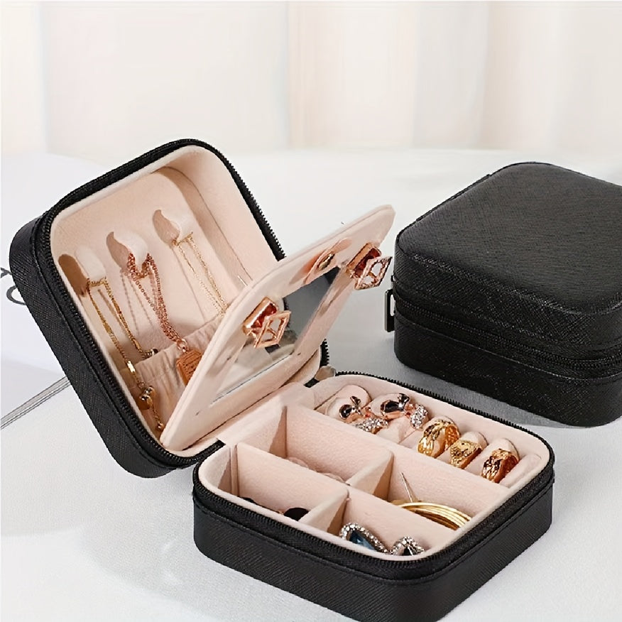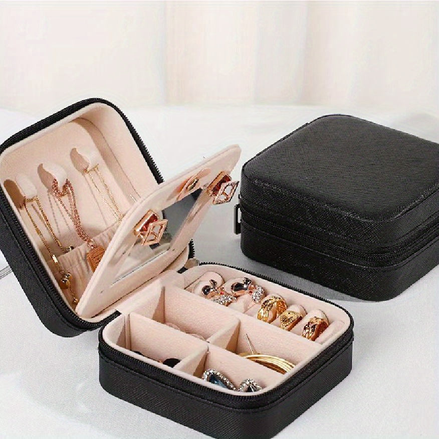 Keep your jewelry organized and easily accessible with this stylish storage box featuring a mirror. The grid design adds a decorative touch to your space.