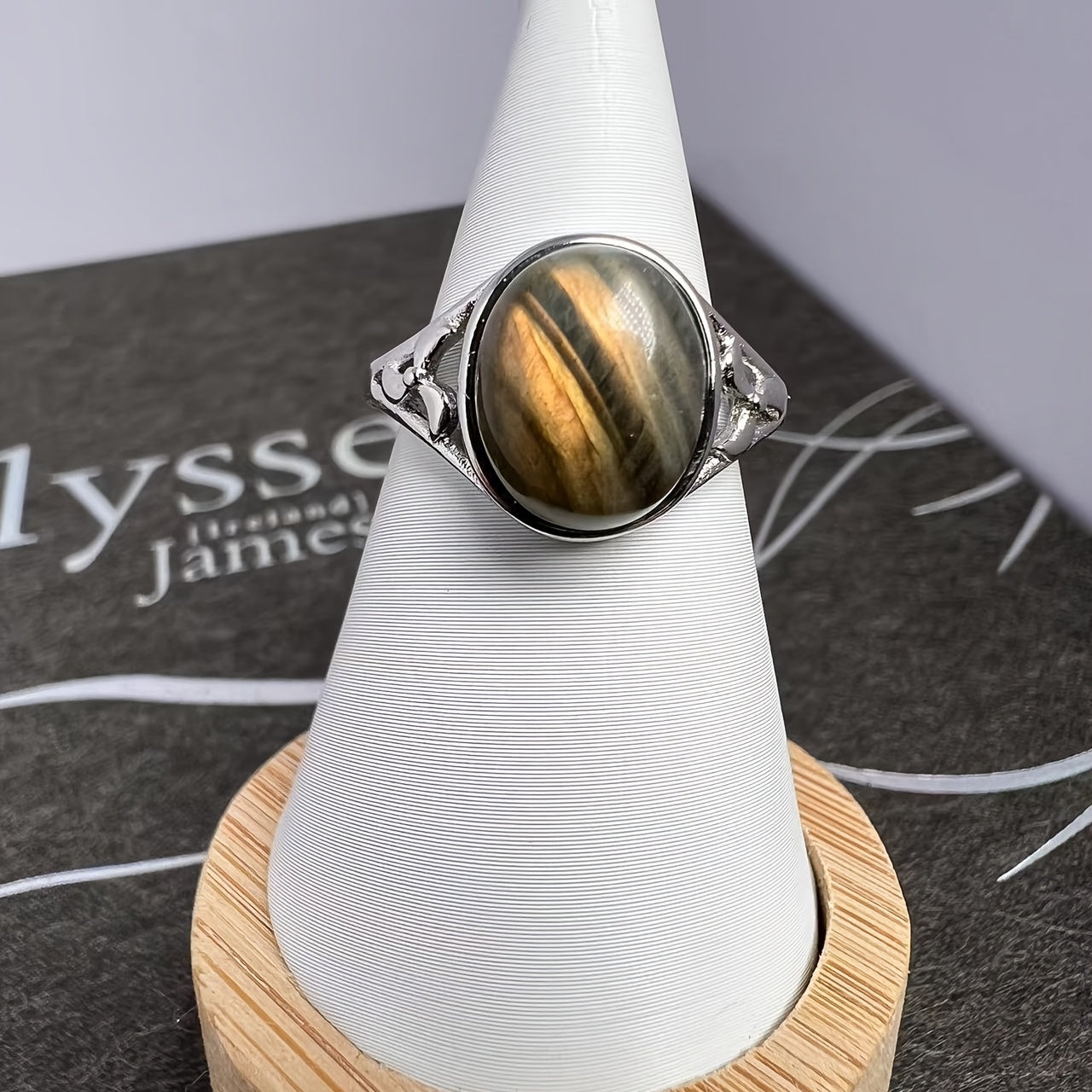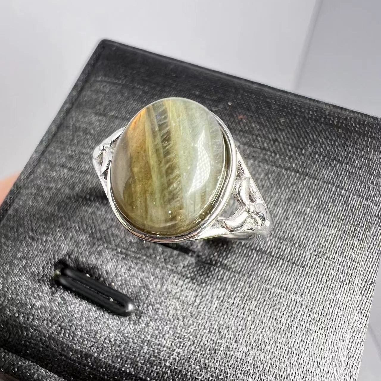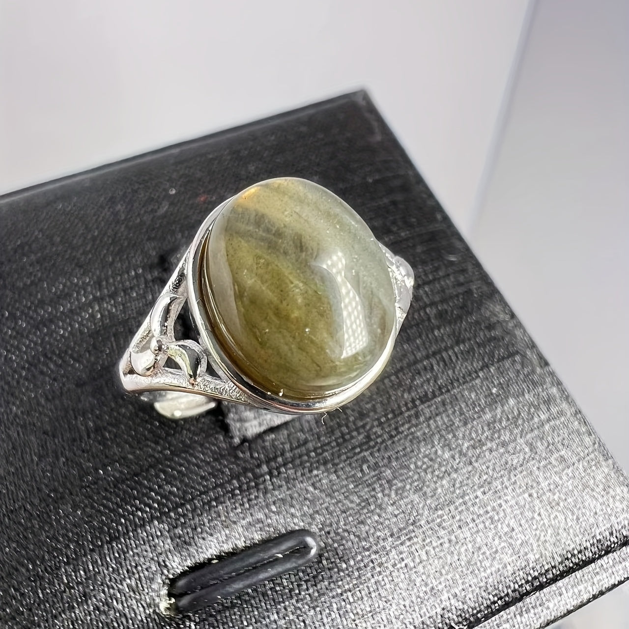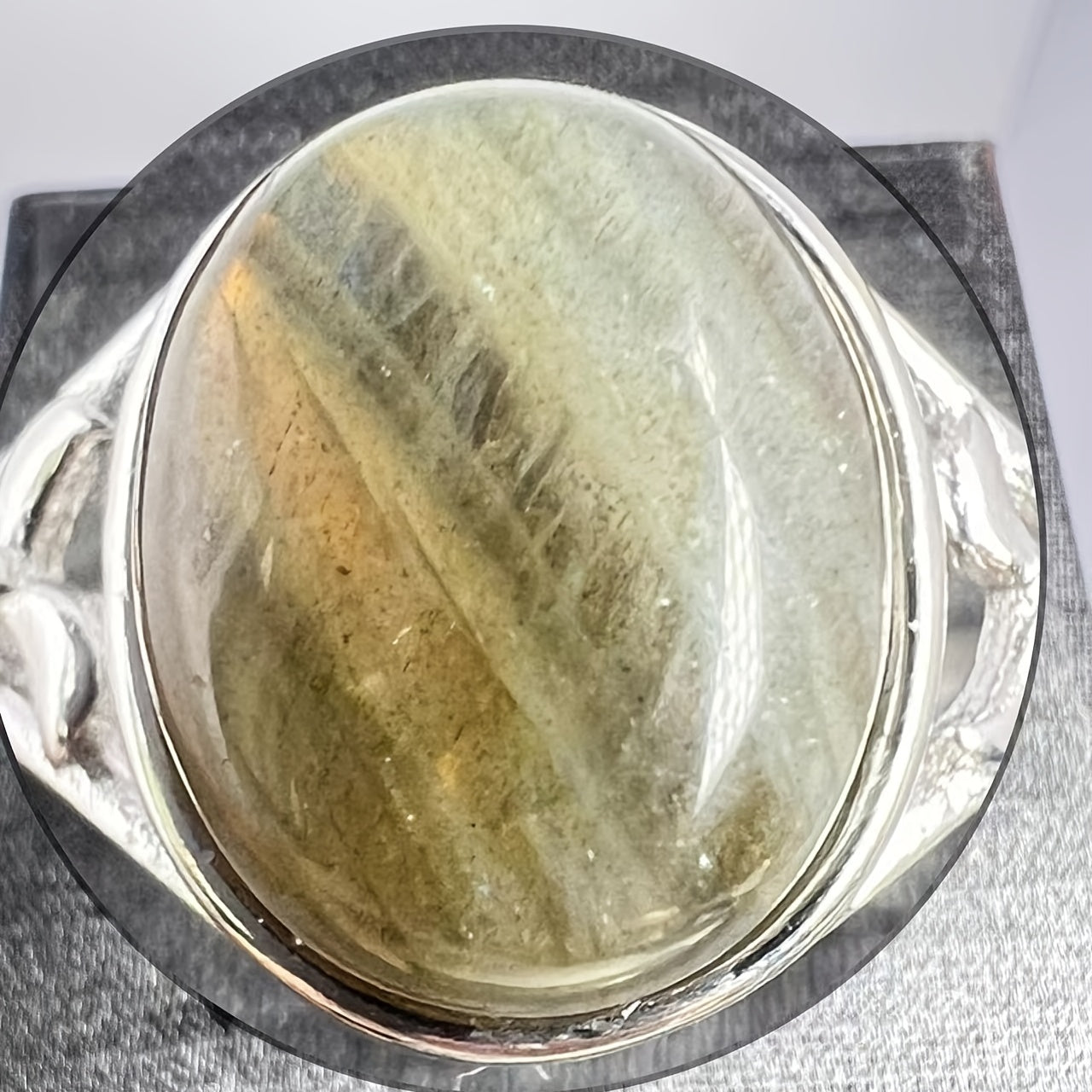 Enhance your style with this stunning labradorite crystal ring featuring silver plating. Suitable for both men and women, this adjustable alloy ring adds a touch of elegance to any outfit.