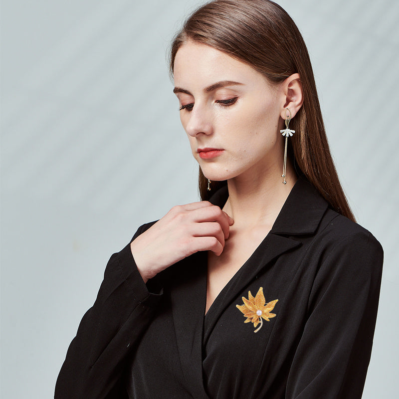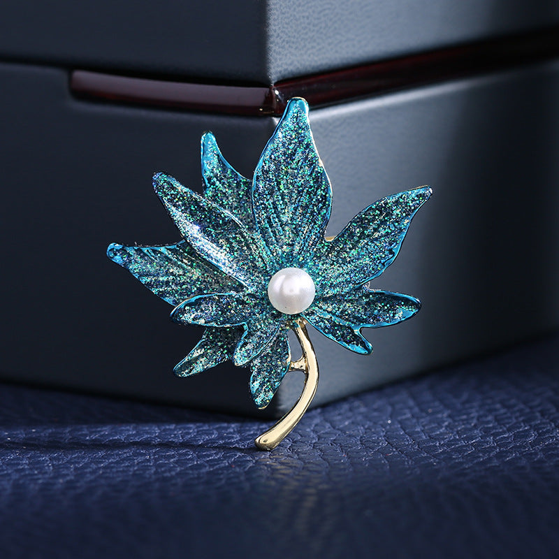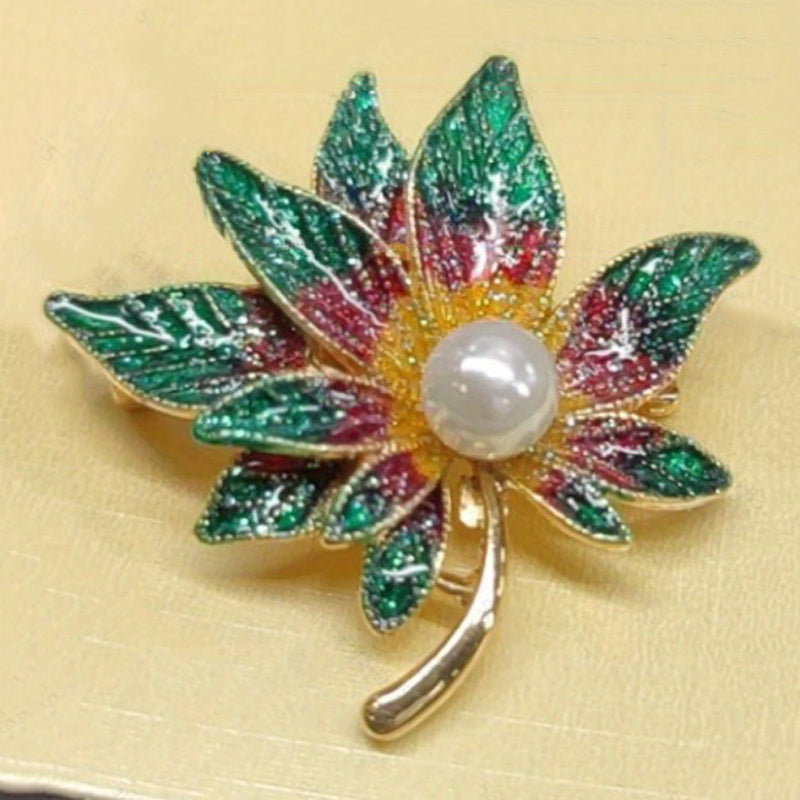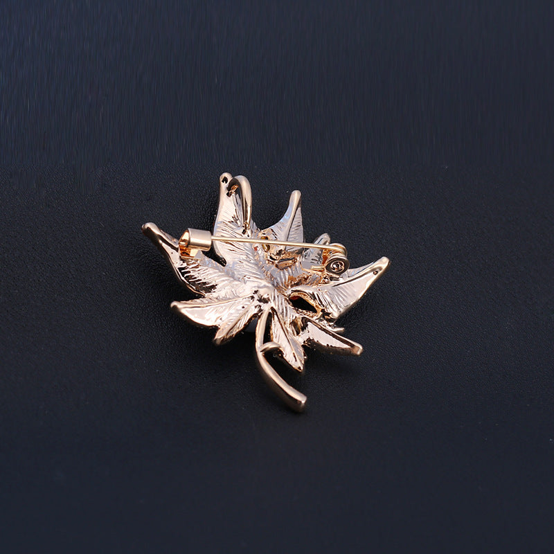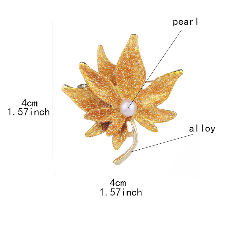 Maple Leaf Brooch Faux Pearl Glittering Safety Pin