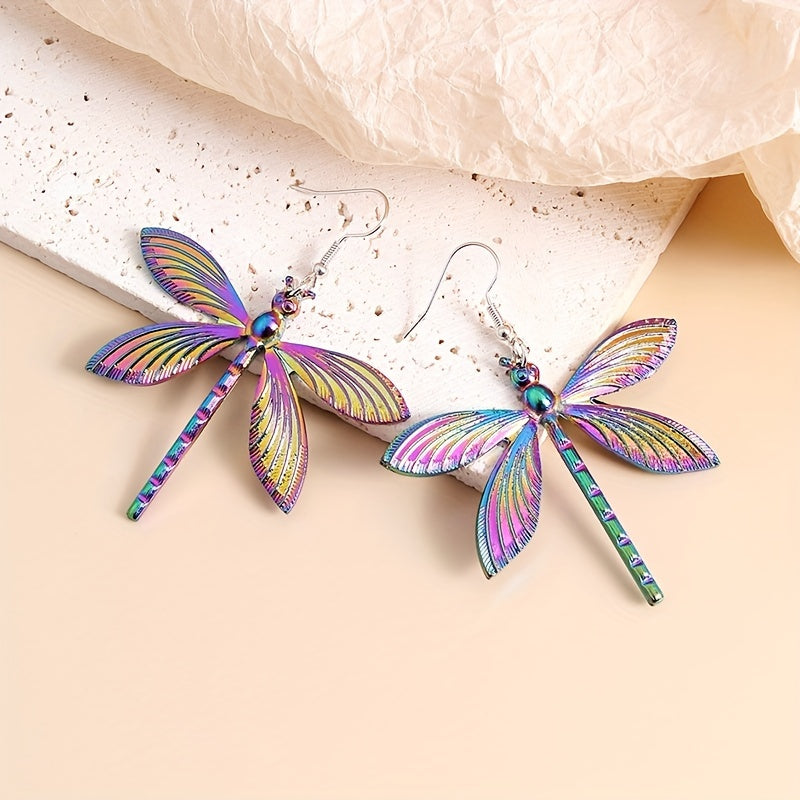 Add a touch of whimsy to your style with these dragonfly earrings. The vibrant colors and unique design make them a standout accessory.