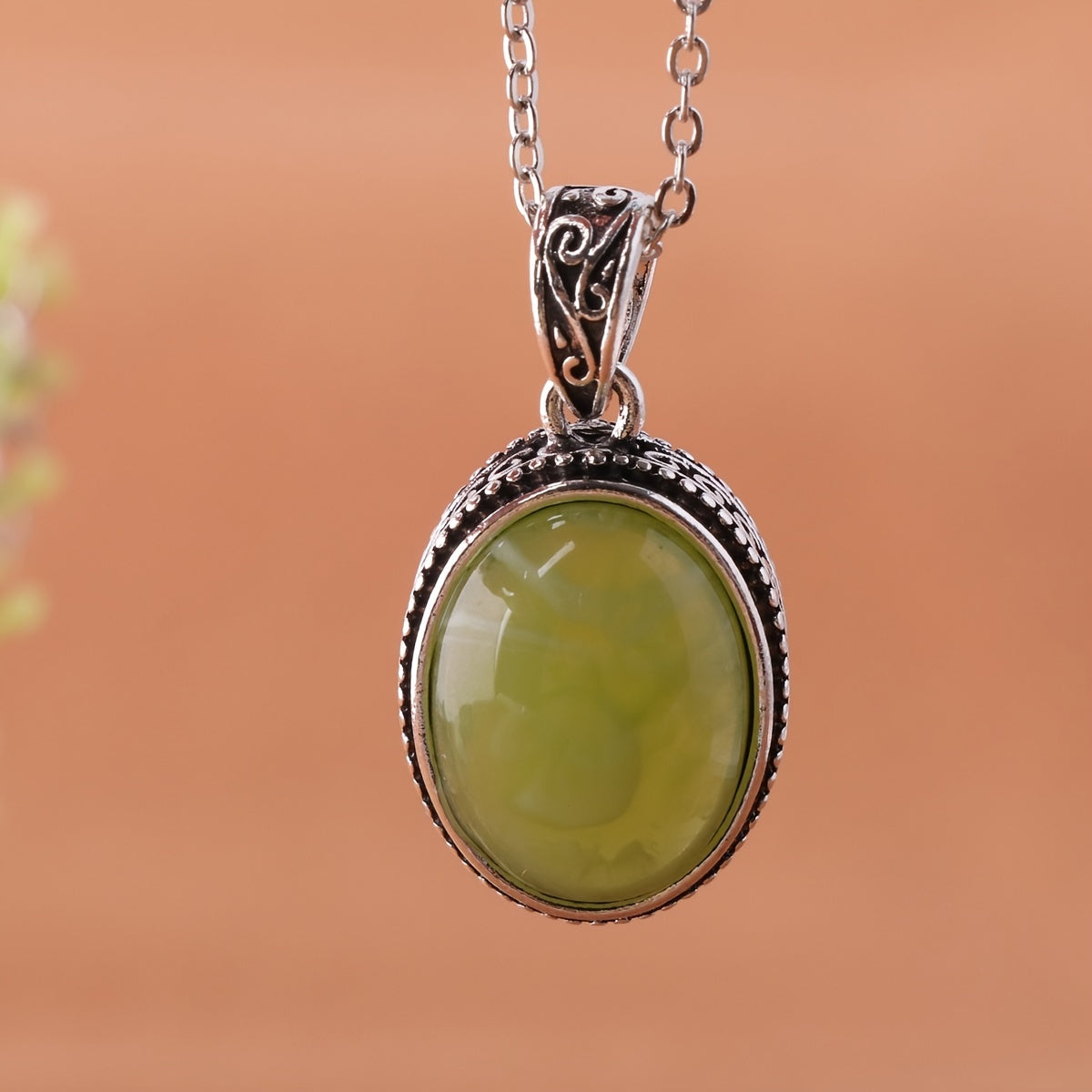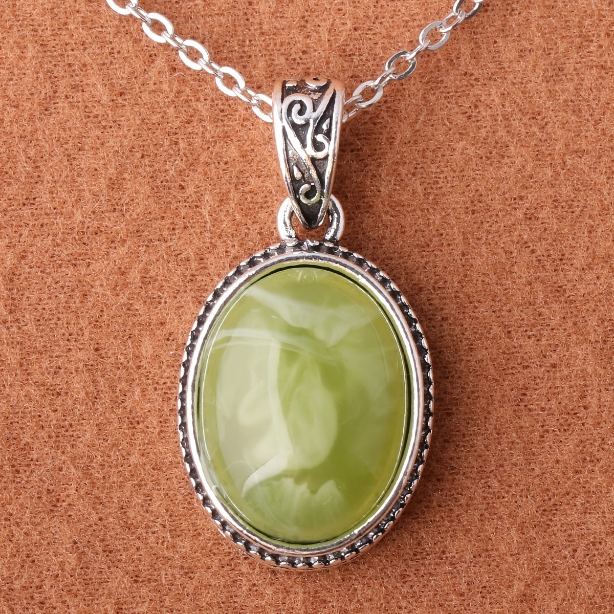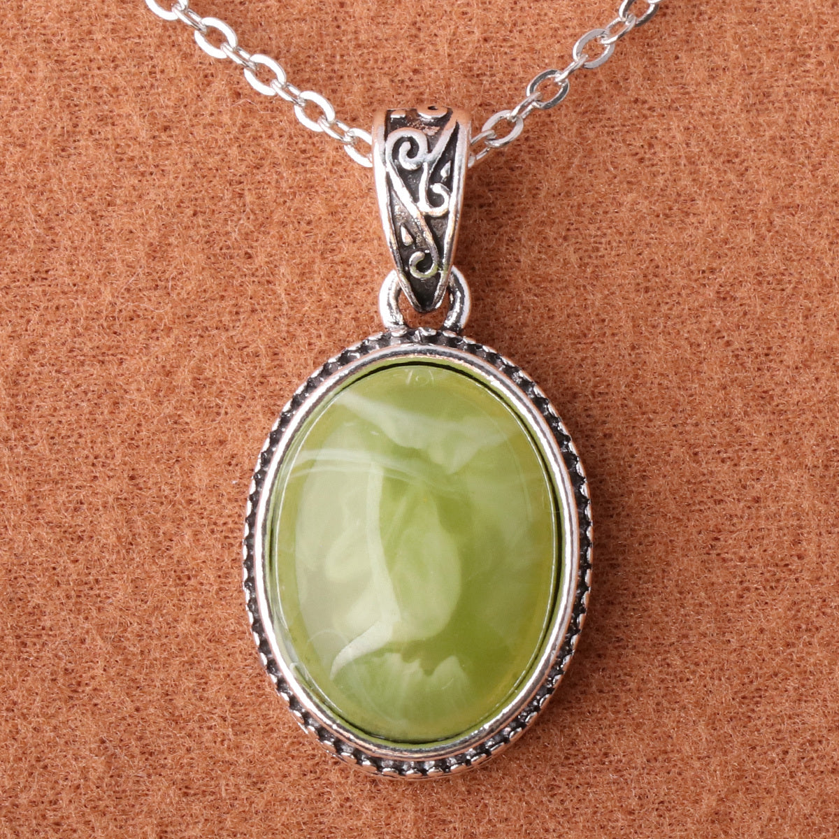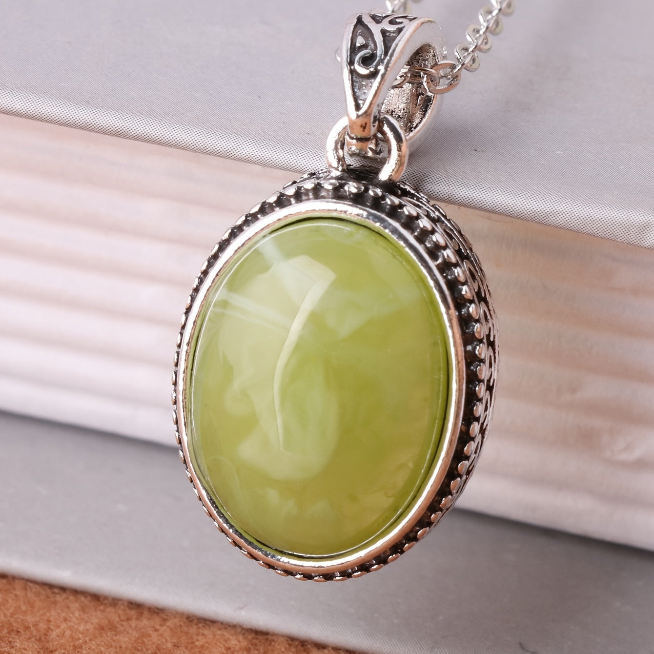 Add a touch of style to your outfit with this green striped resin pendant necklace for men.