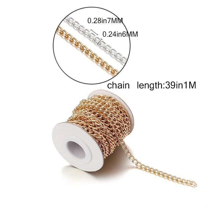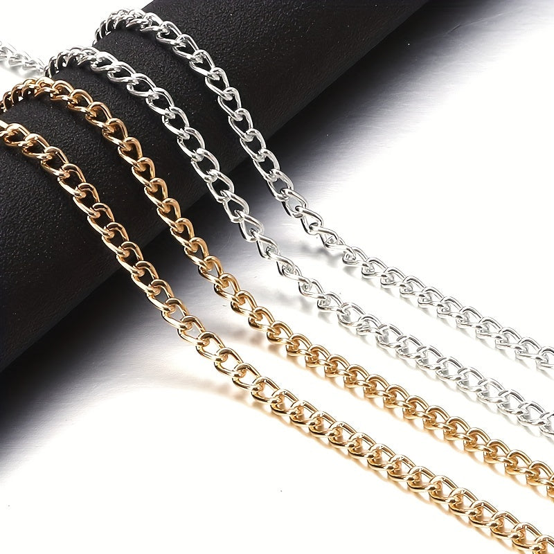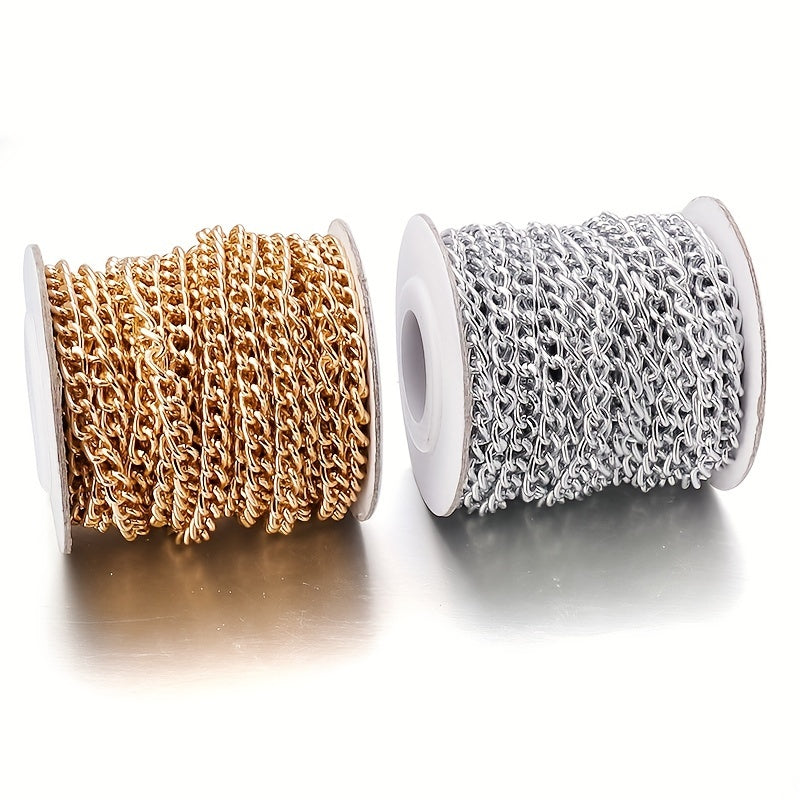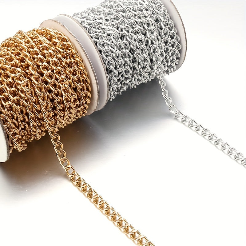 Add a touch of classic elegance to your jewelry designs with this golden and silver metal chain. Perfect for creating necklaces, bracelets, and more.