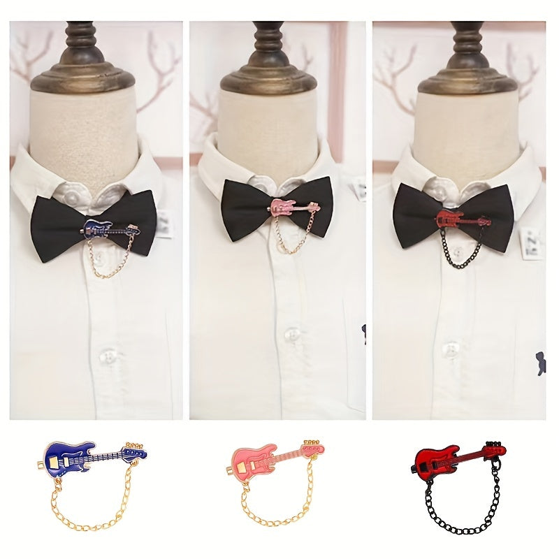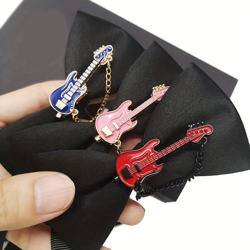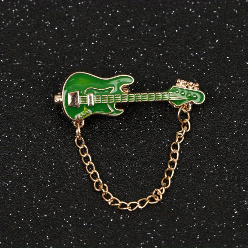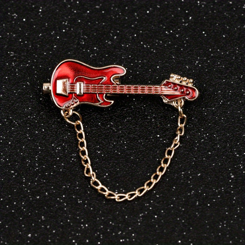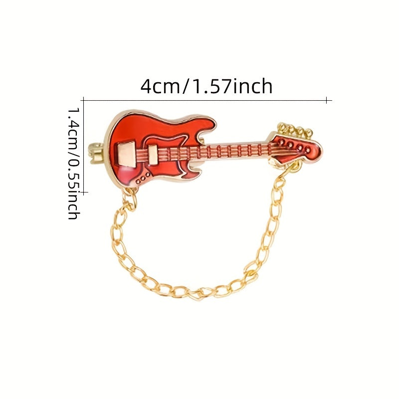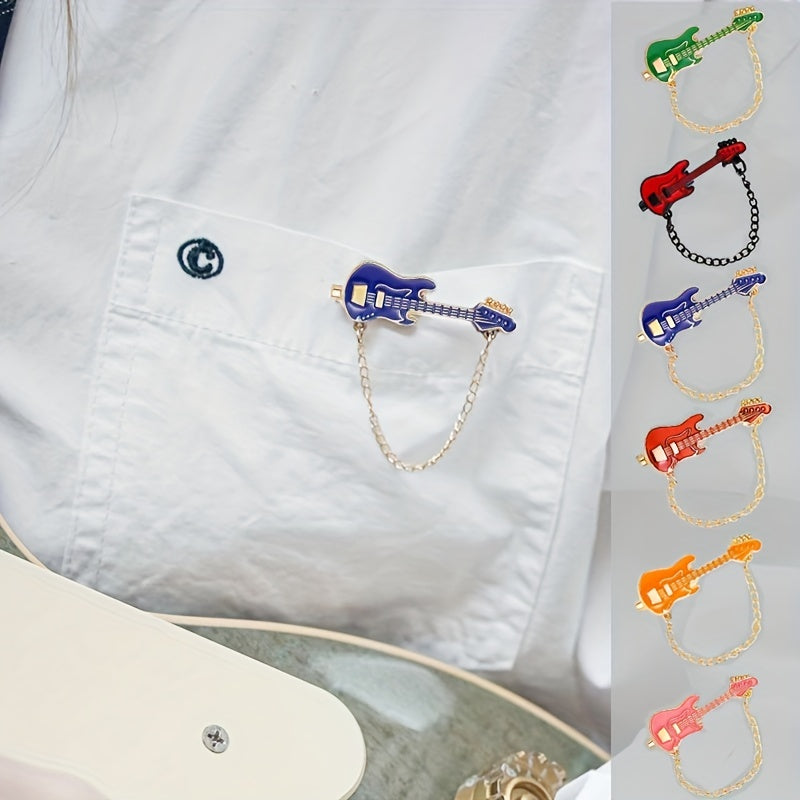 Add a touch of musical flair to your outfit with this colorful mini guitar metal brooch. Perfect for musicians and music lovers alike.