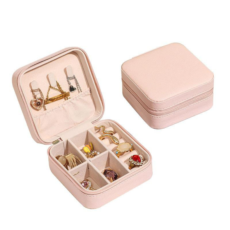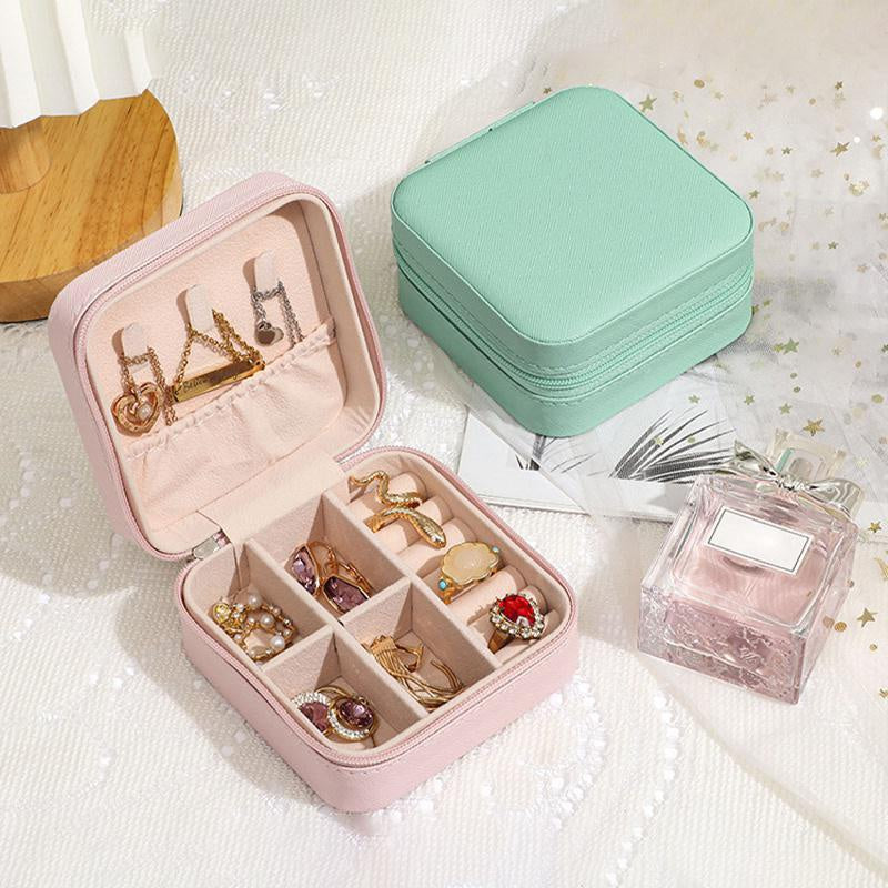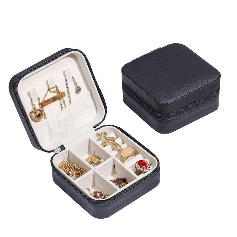 Keep your jewelry organized while on the go with this mini jewelry box. Made of PU leather, this portable case is perfect for storing earrings, necklaces, and rings securely.
