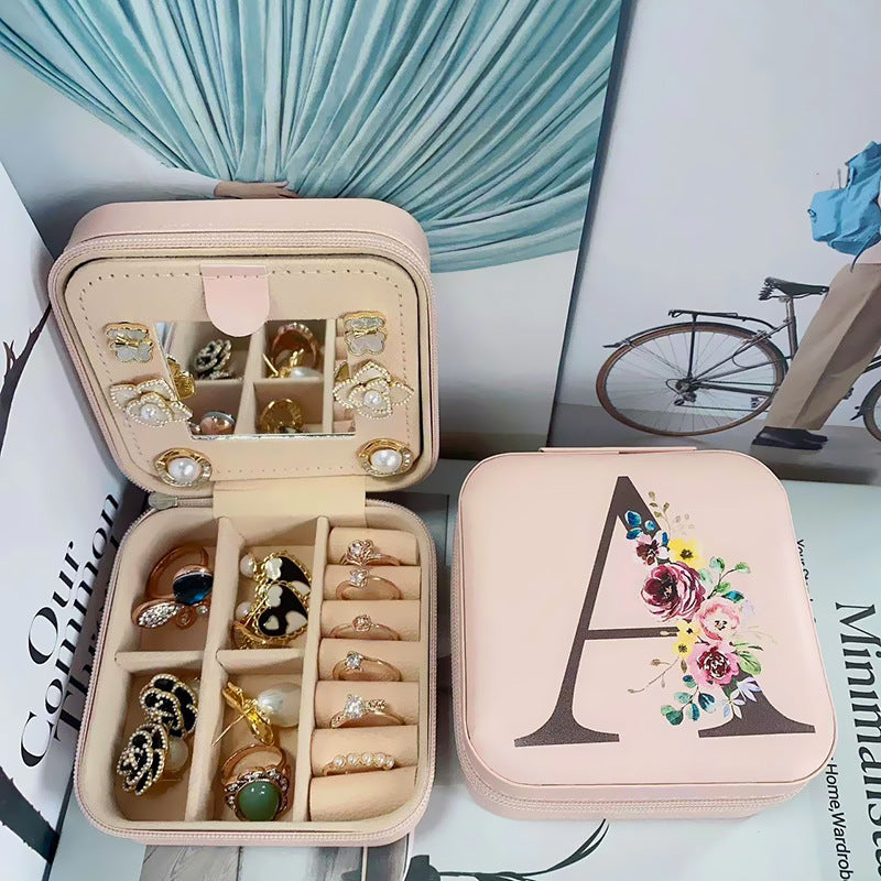 Keep your jewelry organized and secure with this portable zipper storage box featuring a mirror. Ideal for rings, necklaces, and studs.