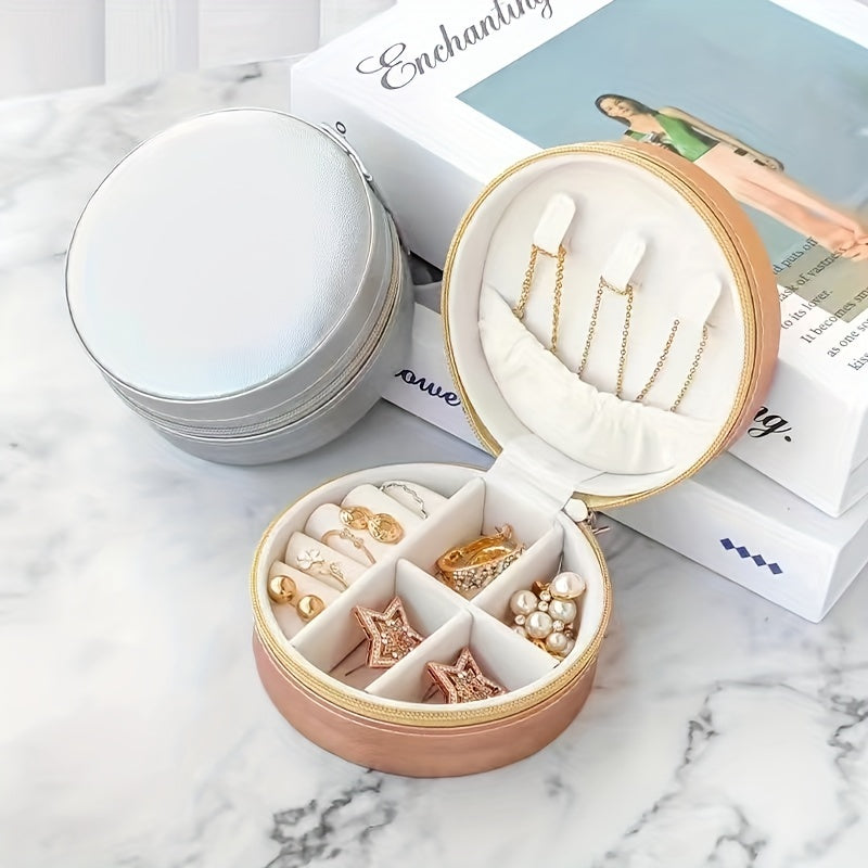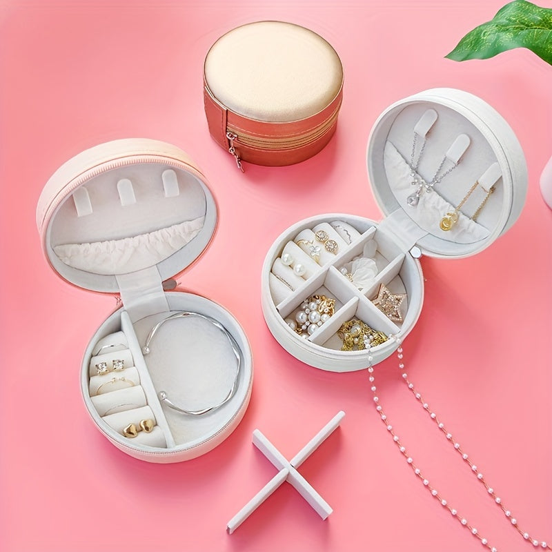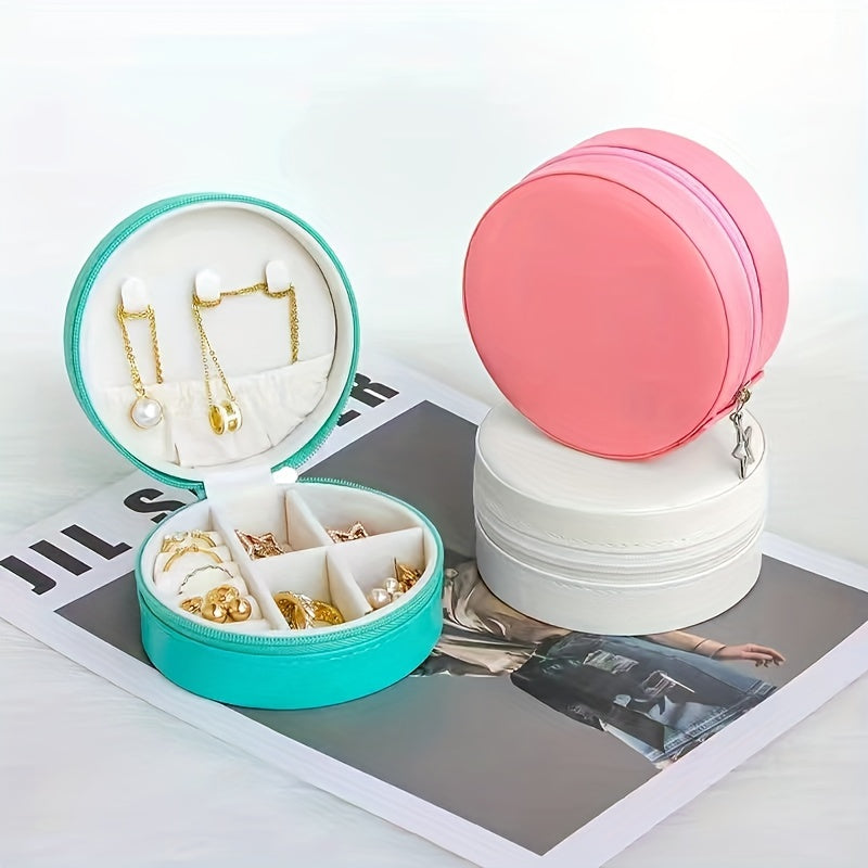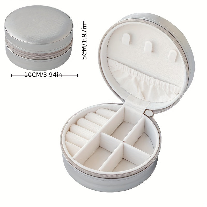 Mini Portable Round Compact Jewelry Storage Box For Rings Necklaces