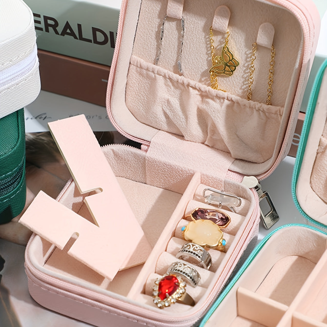 Keep your rings, necklaces, and more organized in this solid and multifunctional jewelry storage box. Ideal for home use or while traveling.