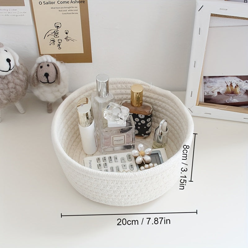 Keep your desktop organized with this minimalist rope woven storage basket. Ideal for storing small items and adding a touch of style to your workspace.