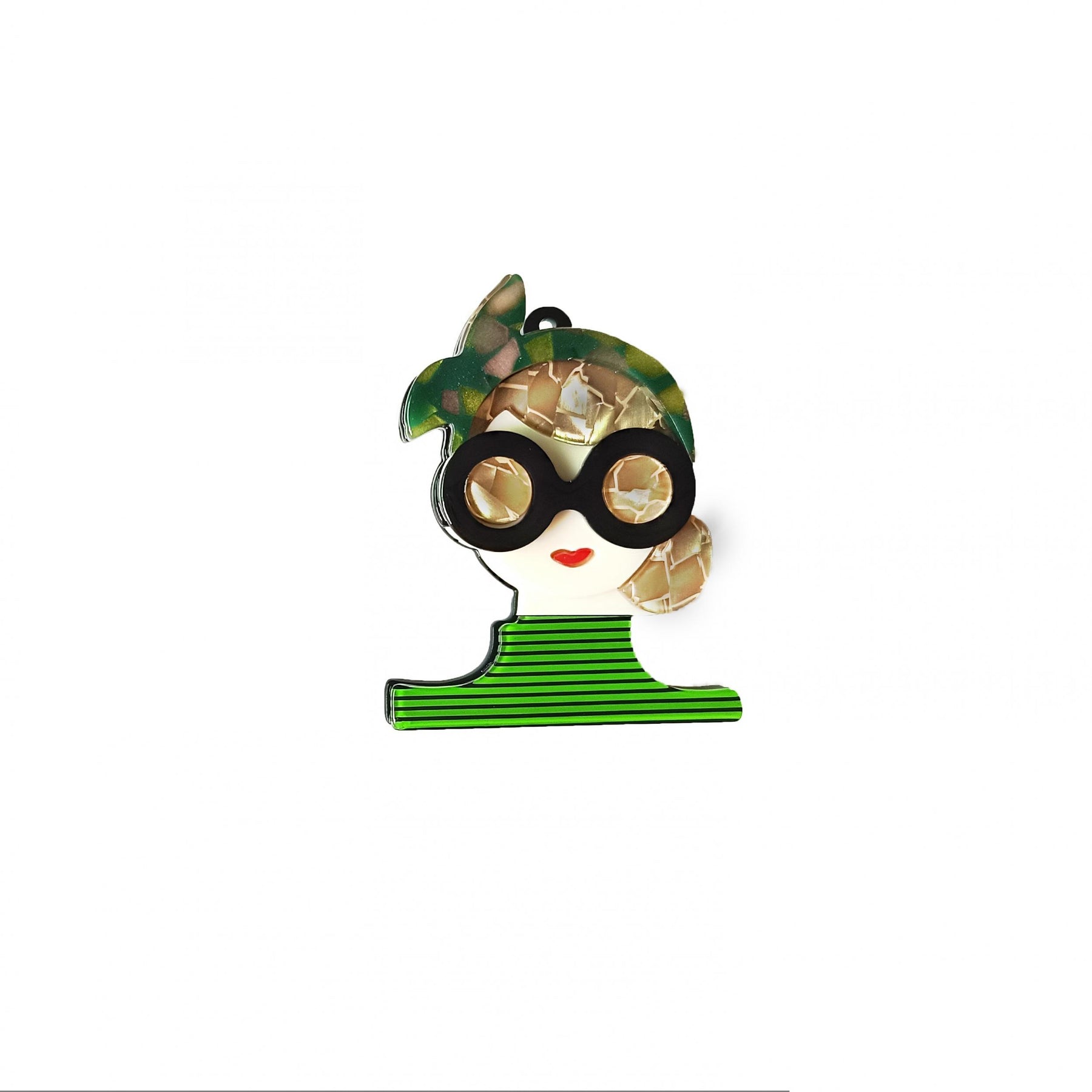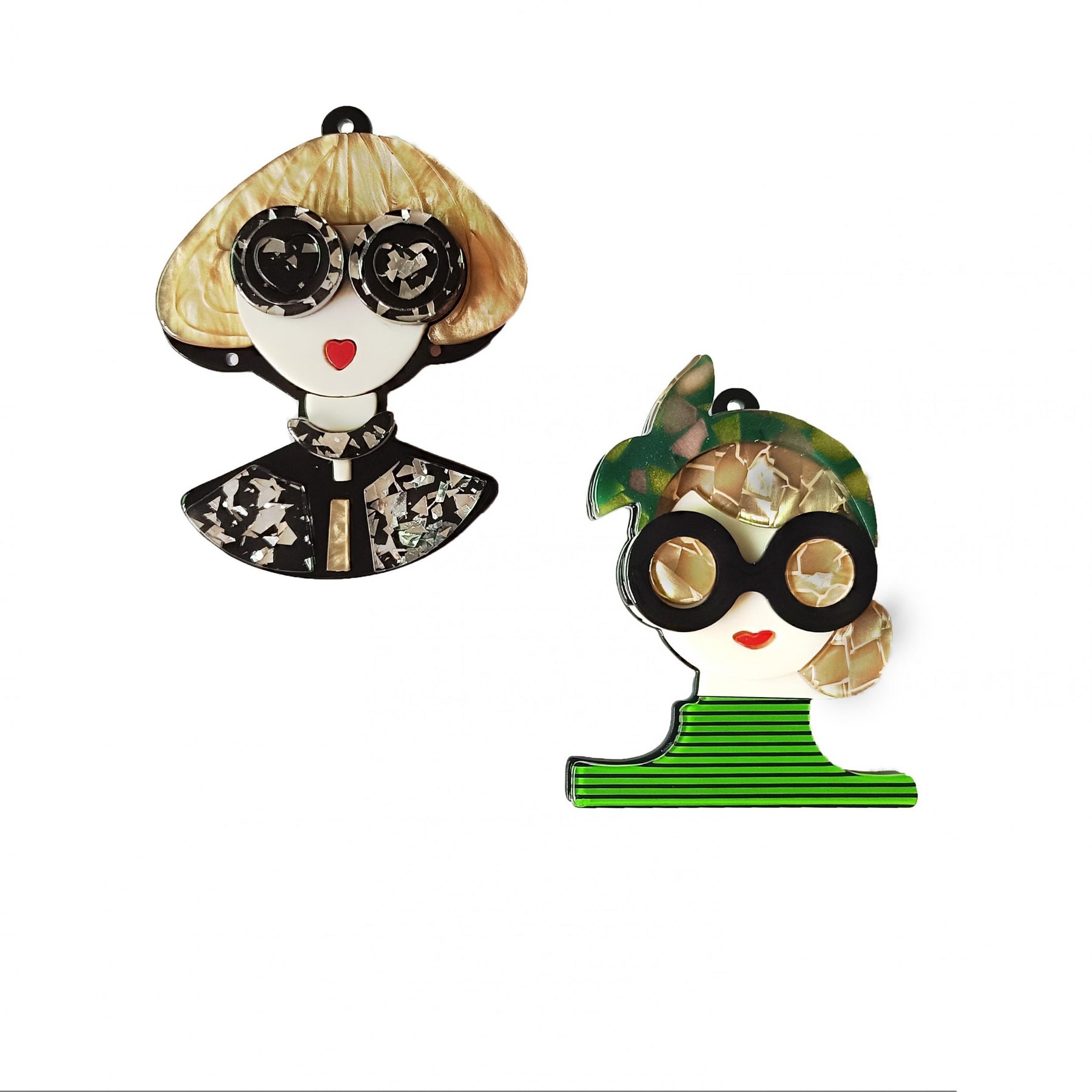 Add a touch of vintage flair to your outfit with this mod girl brooch pin. Made of durable acetate material, this pin can be worn on collars, lapels, shirts, suits, cardigans, and scarves.