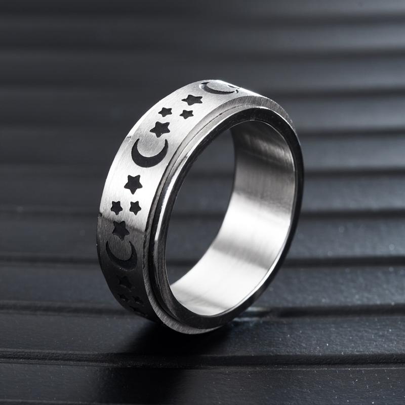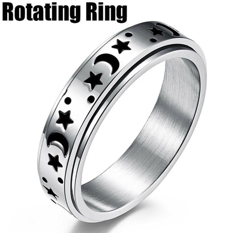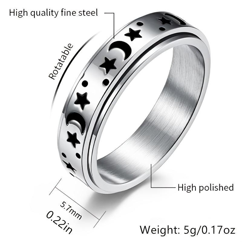 This stylish stainless steel ring features a moon and star pattern that rotates. Perfect for everyday wear or special occasions.