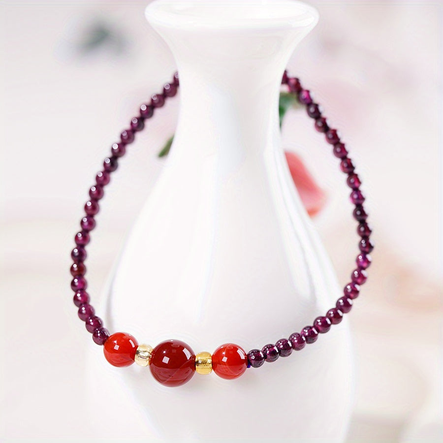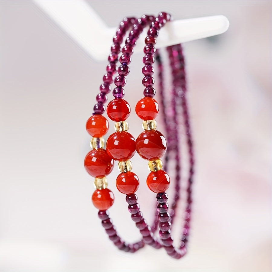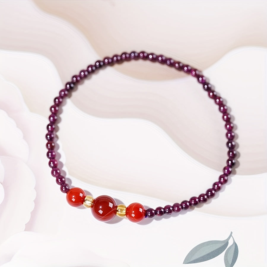 Add a touch of elegance to your beach party outfit with this natural garnet waterproof bracelet.