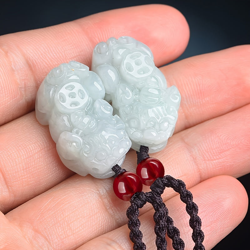 This small Pixiu jade pendant brings luck and positive energy to both men and women. Made of natural jade, it is a perfect accessory for everyday wear.