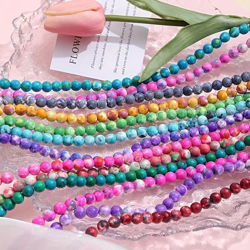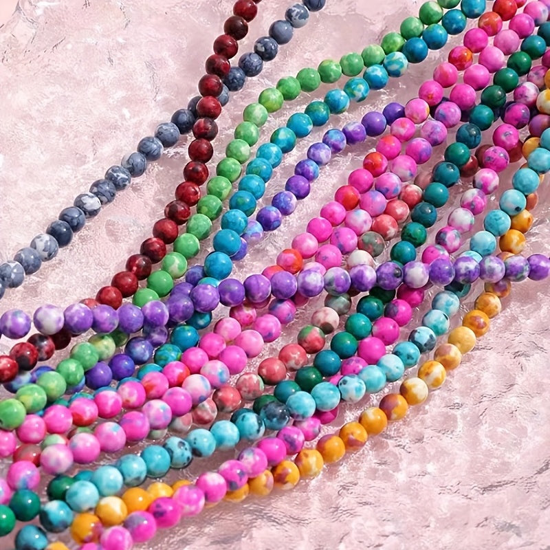 This set includes 36pcs of 6mm, 8mm, and 10mm natural orange and pattern round stone beads ideal for creating your own unique jewelry pieces.