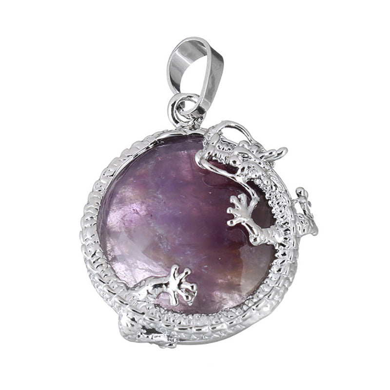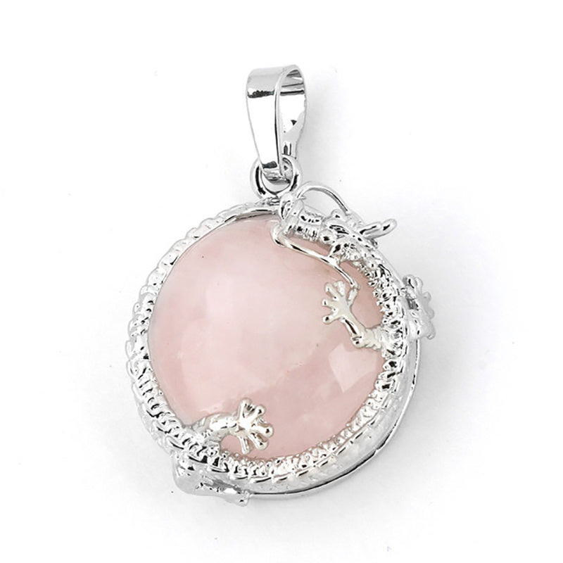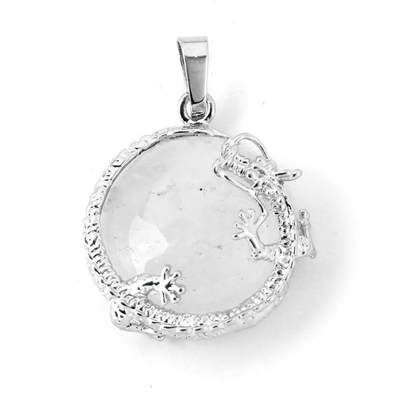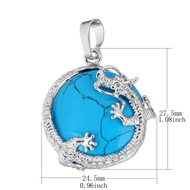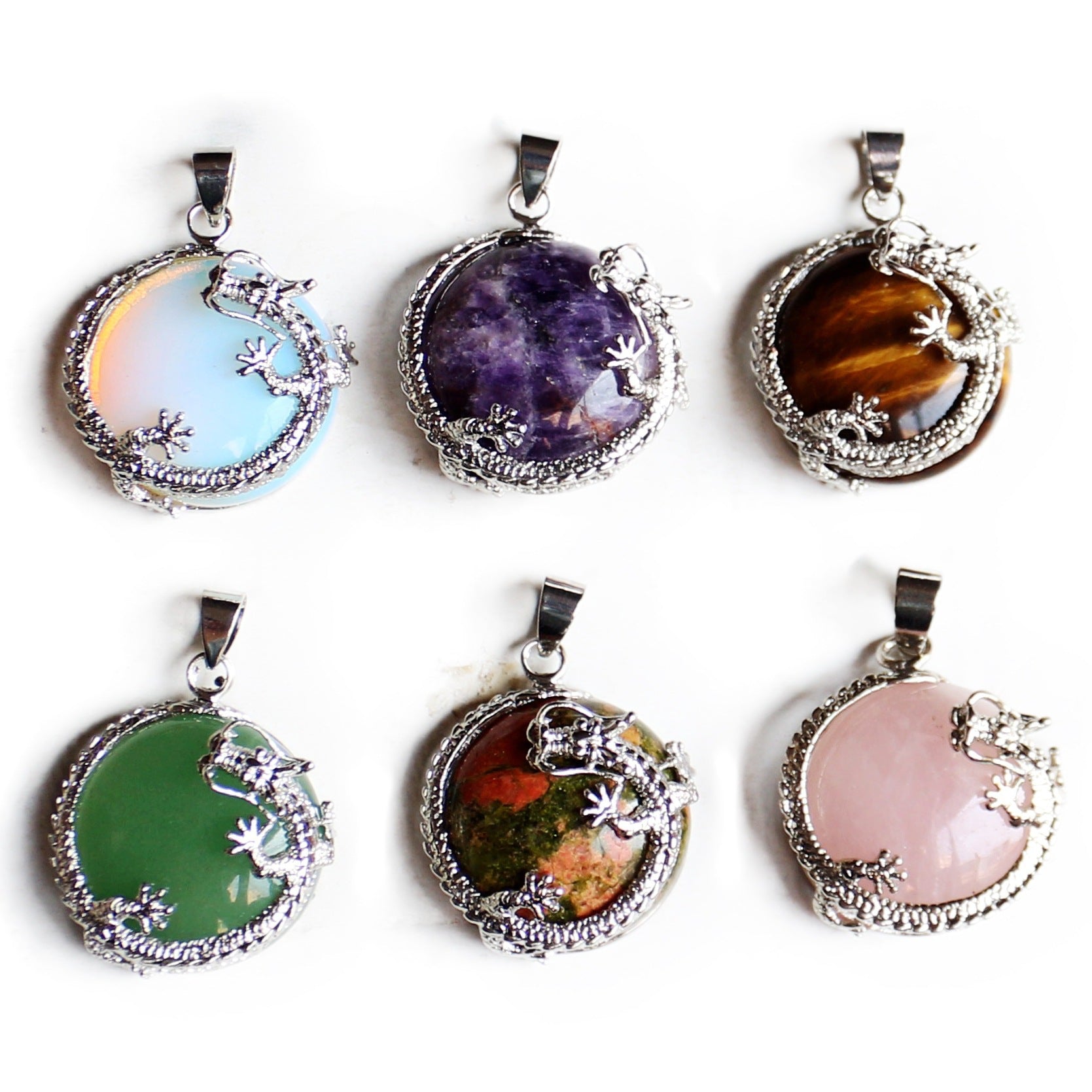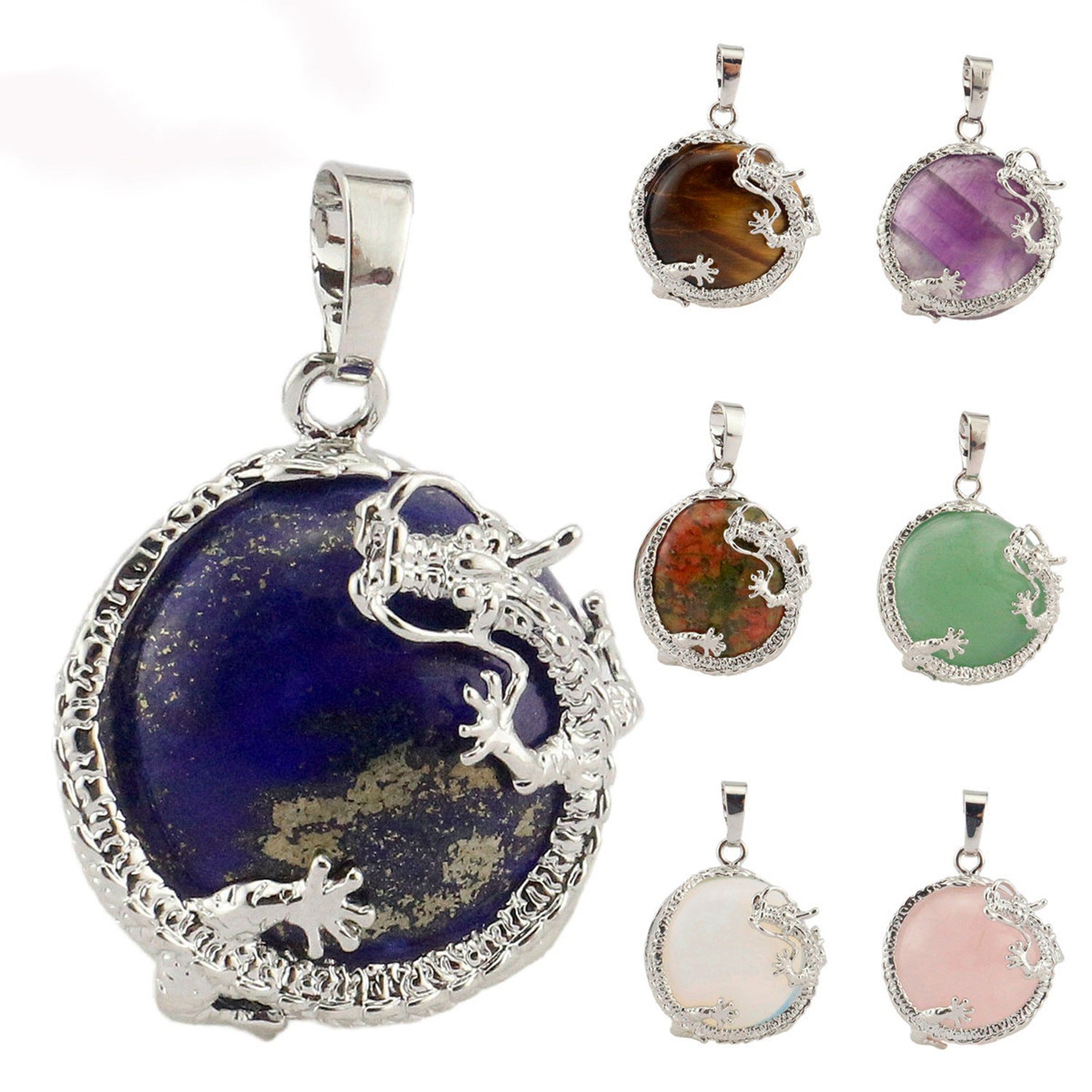 Natural Stone Silver Plated Dragon Charm Sea Opal Tiger Eye Quartz Pendant