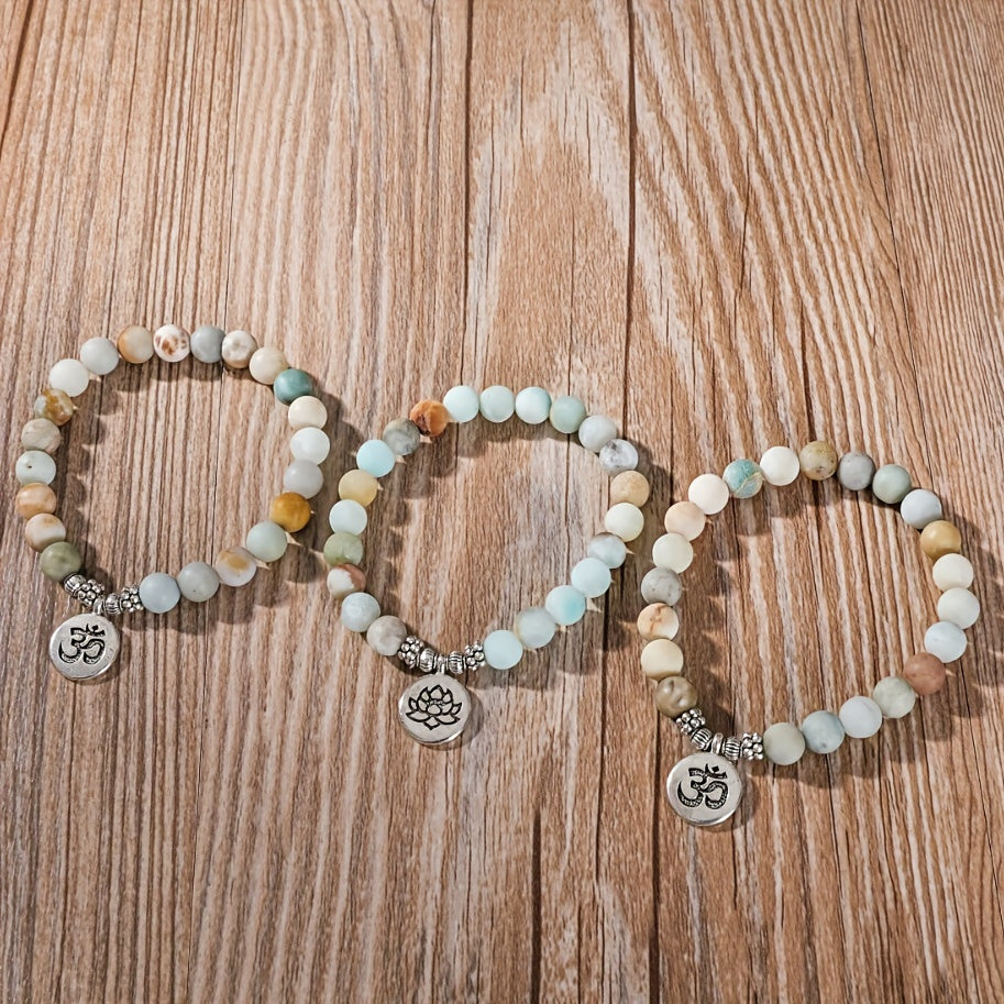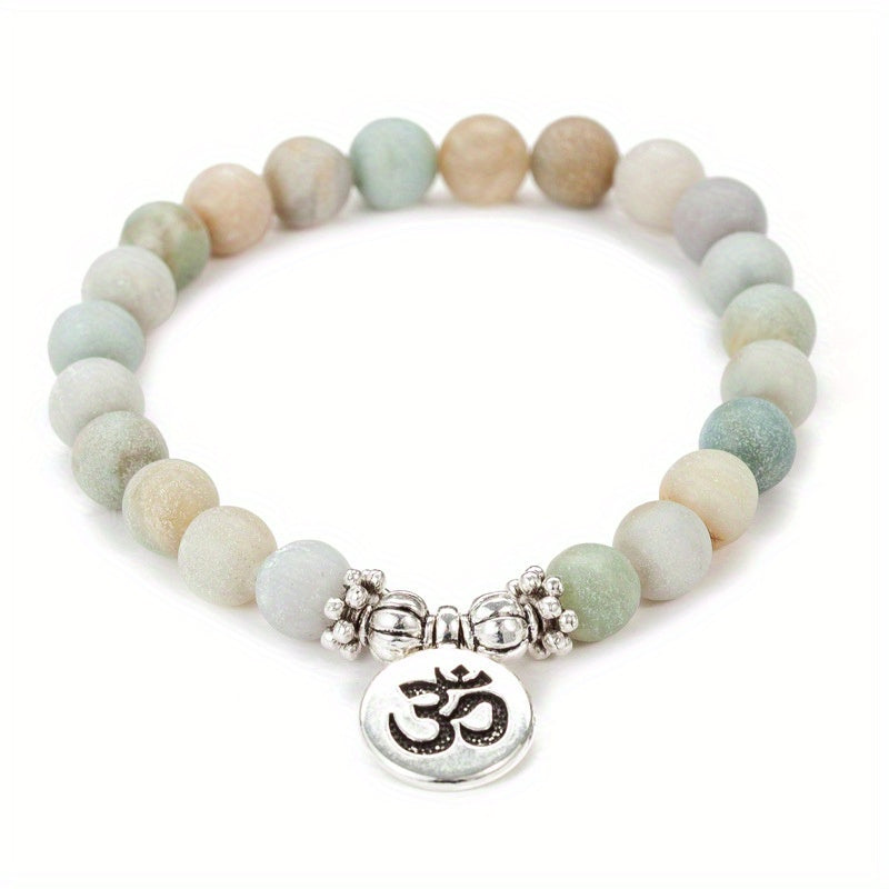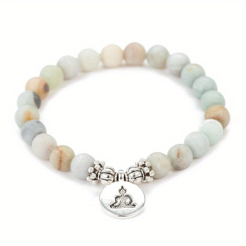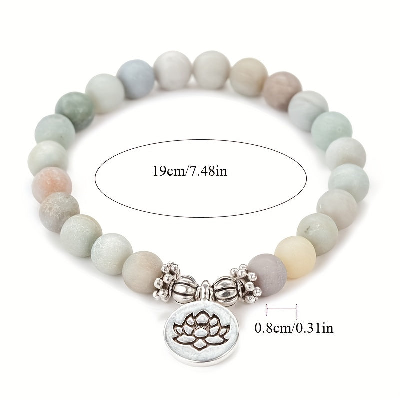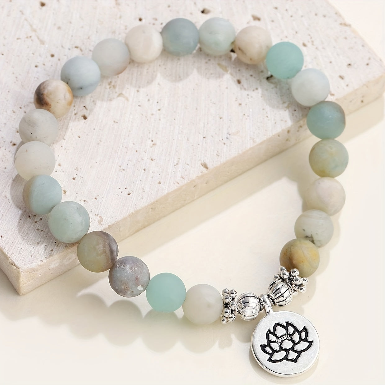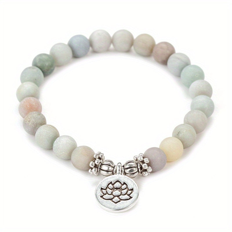 This bracelet features natural stone beads with a lotus pendant, perfect for yoga practice, meditation, or as a stylish accessory. It is a unique and spiritual piece of jewelry that adds a touch of zen to your outfit.